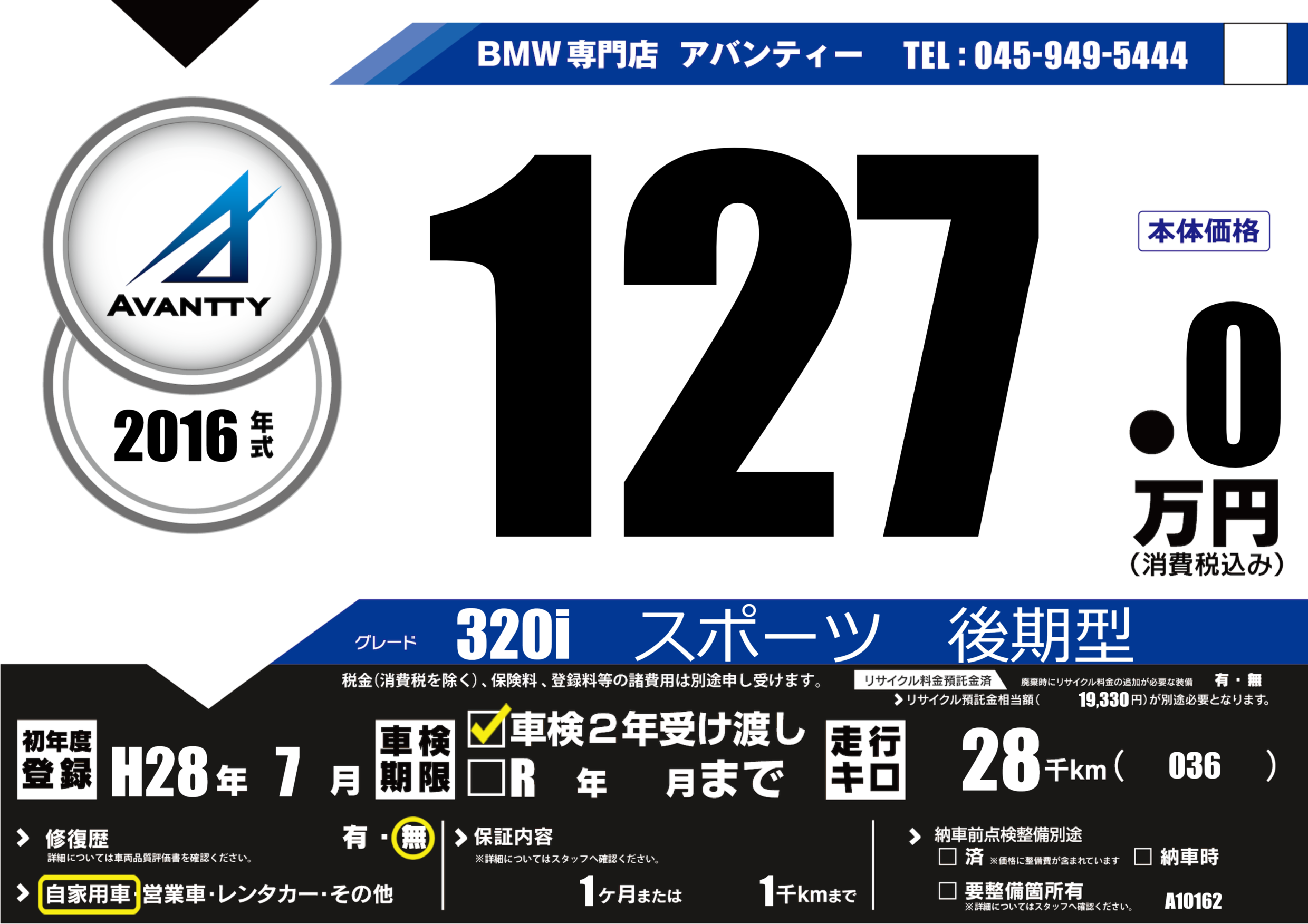 | 初年度登録 | H28年7月 | ||