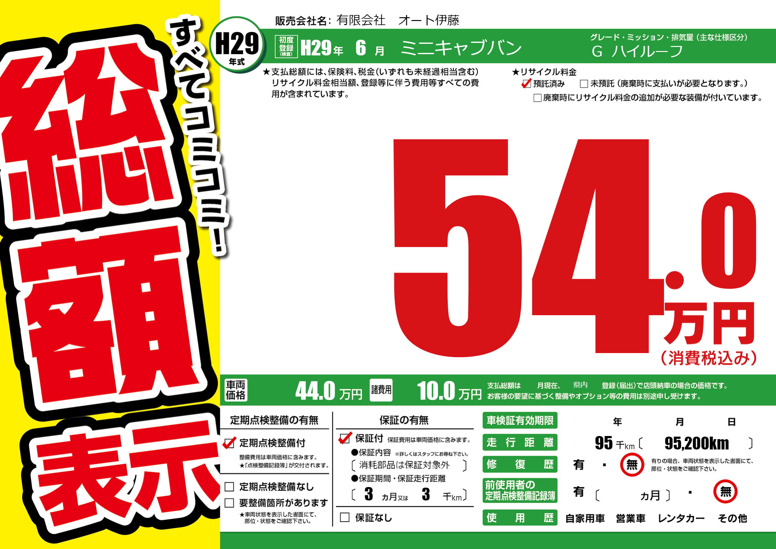 保証付き 保証内容(消耗部品は保証対象外) 3ヶ月または(3)千kmまで |