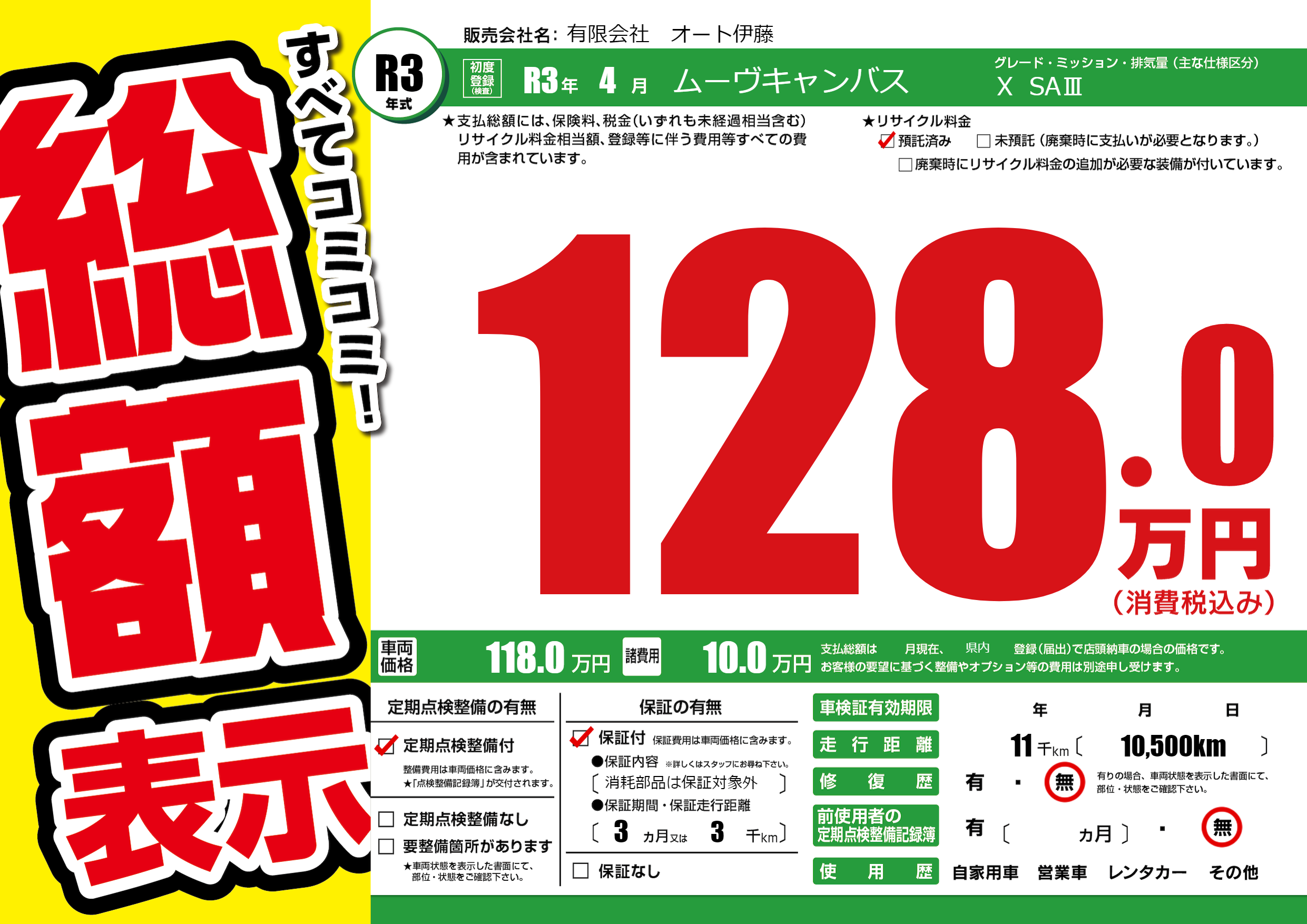 | 走行キロ | 1.1万km | 初年度登録 | R3年4月 |