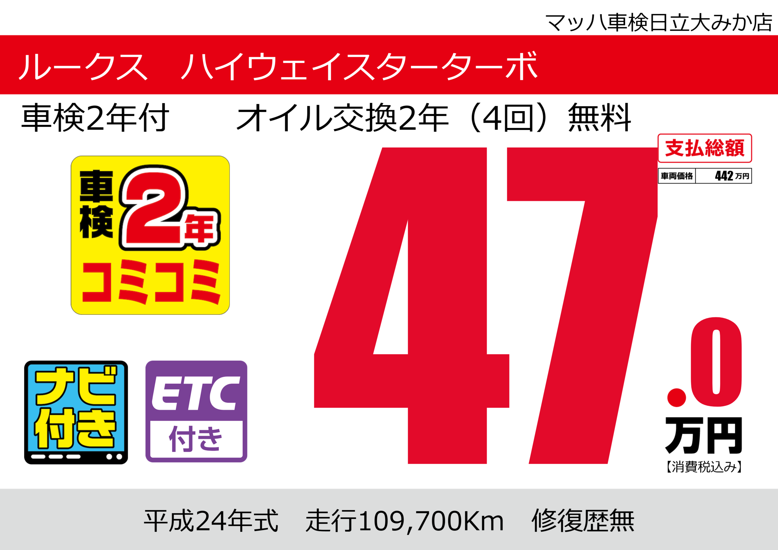 車検2年付 オイル交換2年(4回)無料 |