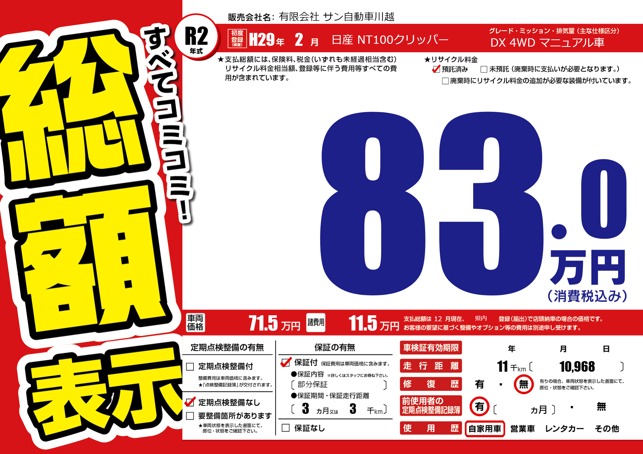 | 定期点検整備 | 定期点検整備なし | ||