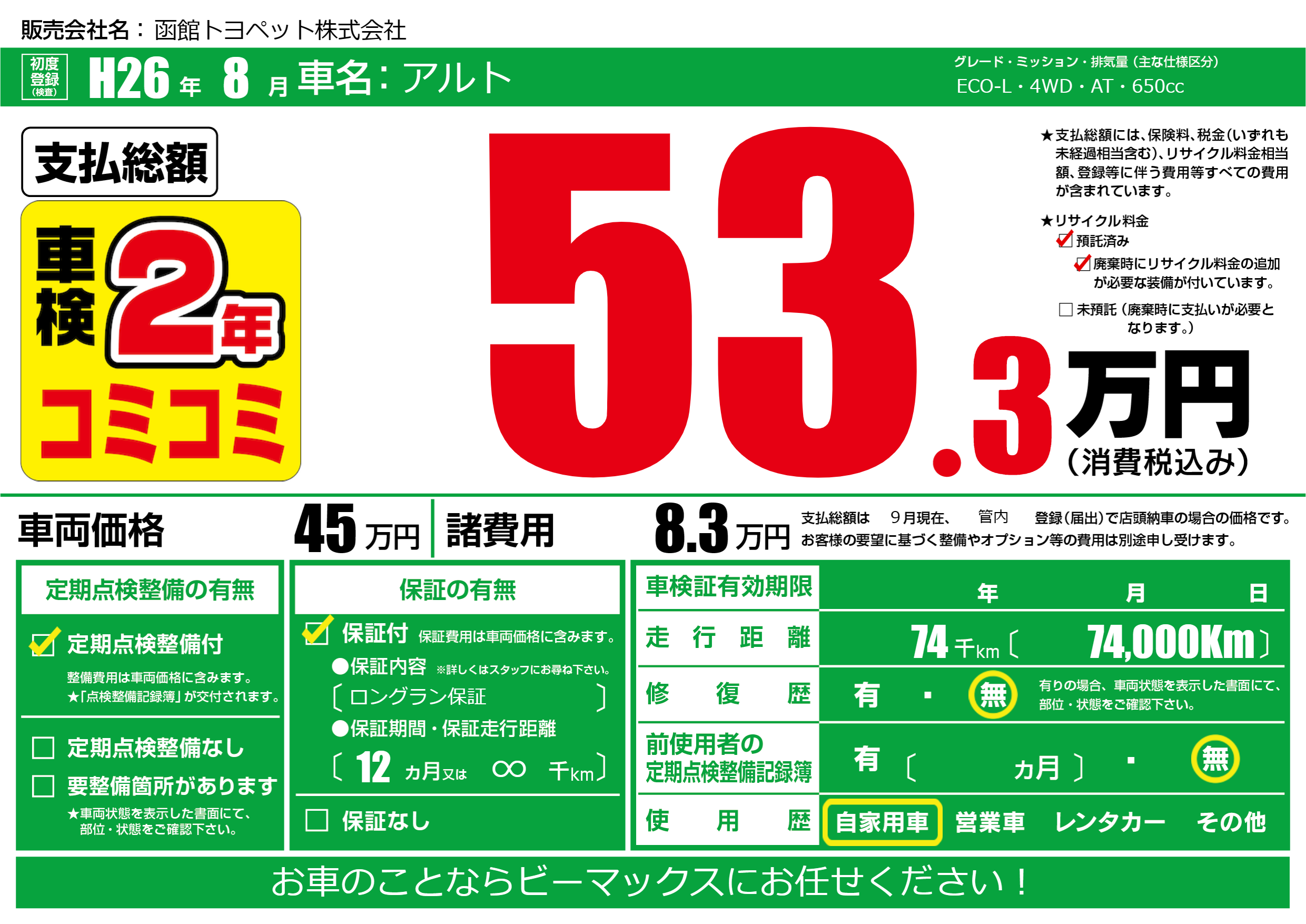 | 定期点検整備 | 定期点検整備あり | ||