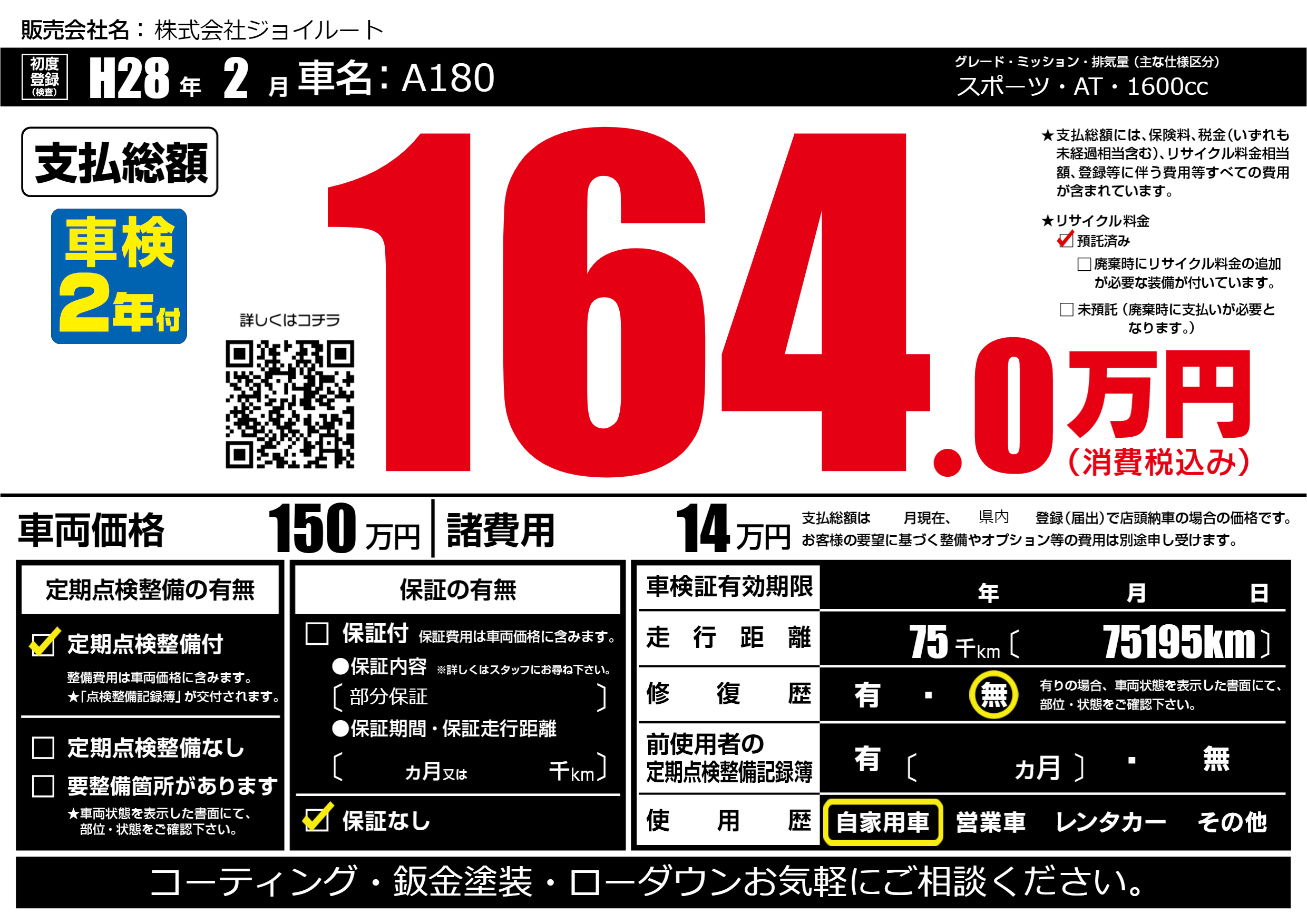 | 走行キロ | 7.5万km | ||