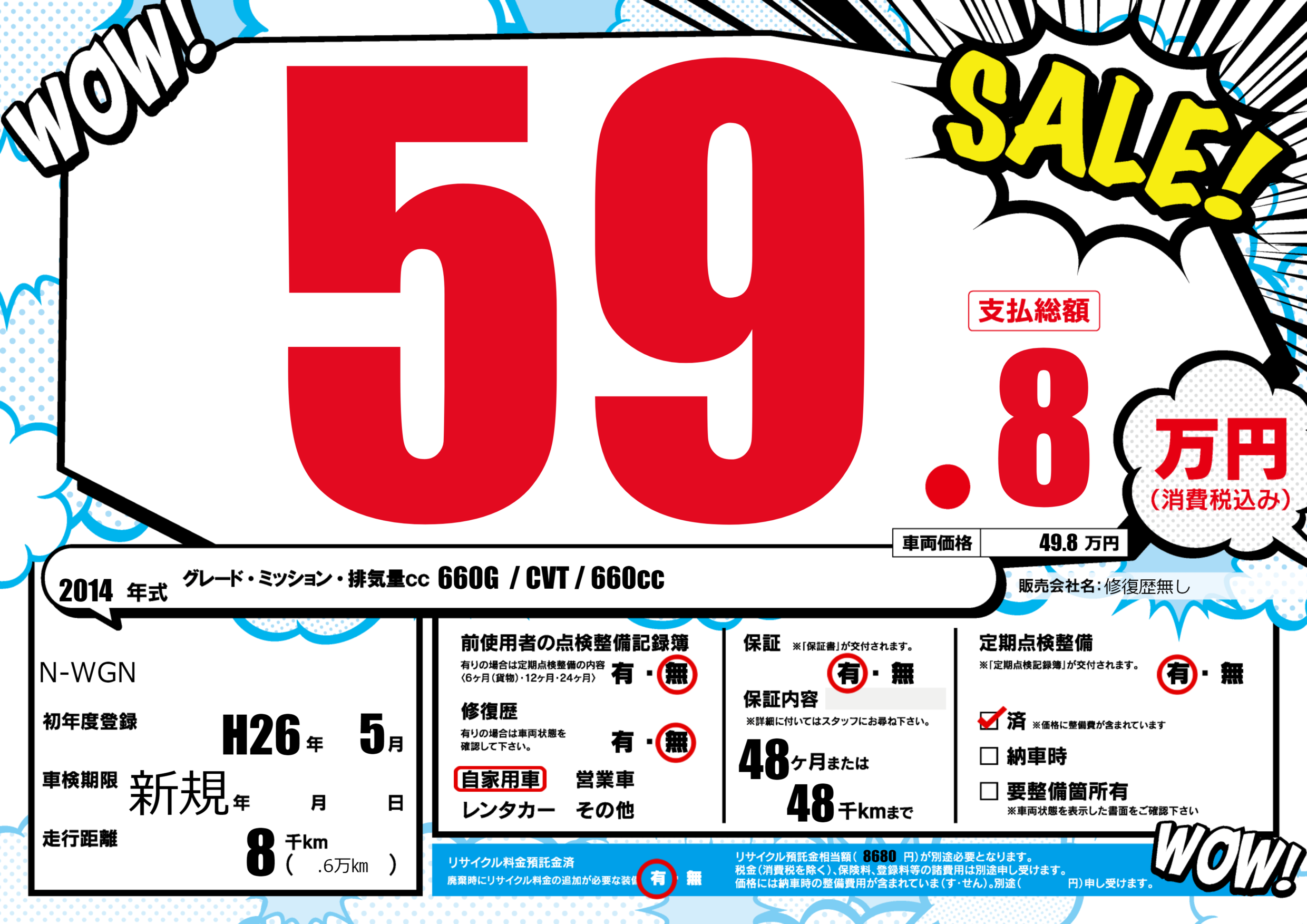 | 定期点検整備 | 定期点検整備あり 定期点検整備済み | ||