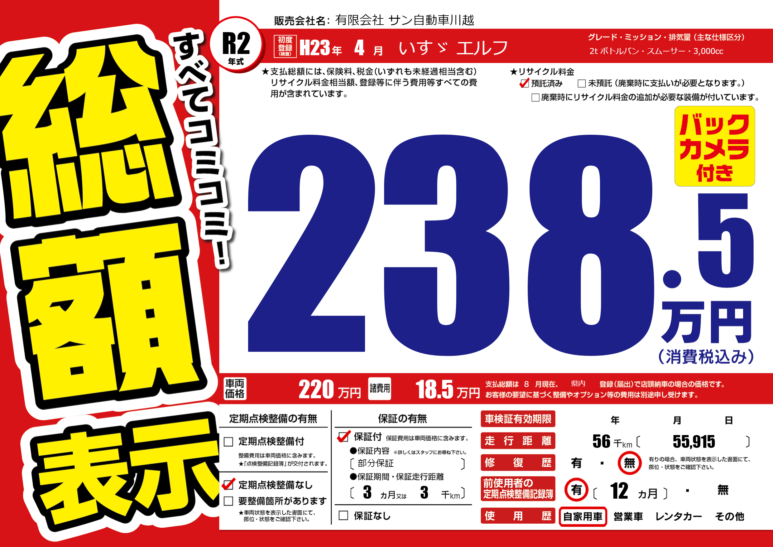 | 車名 | いすゞ エルフ | グレード ミッション 排気量 |