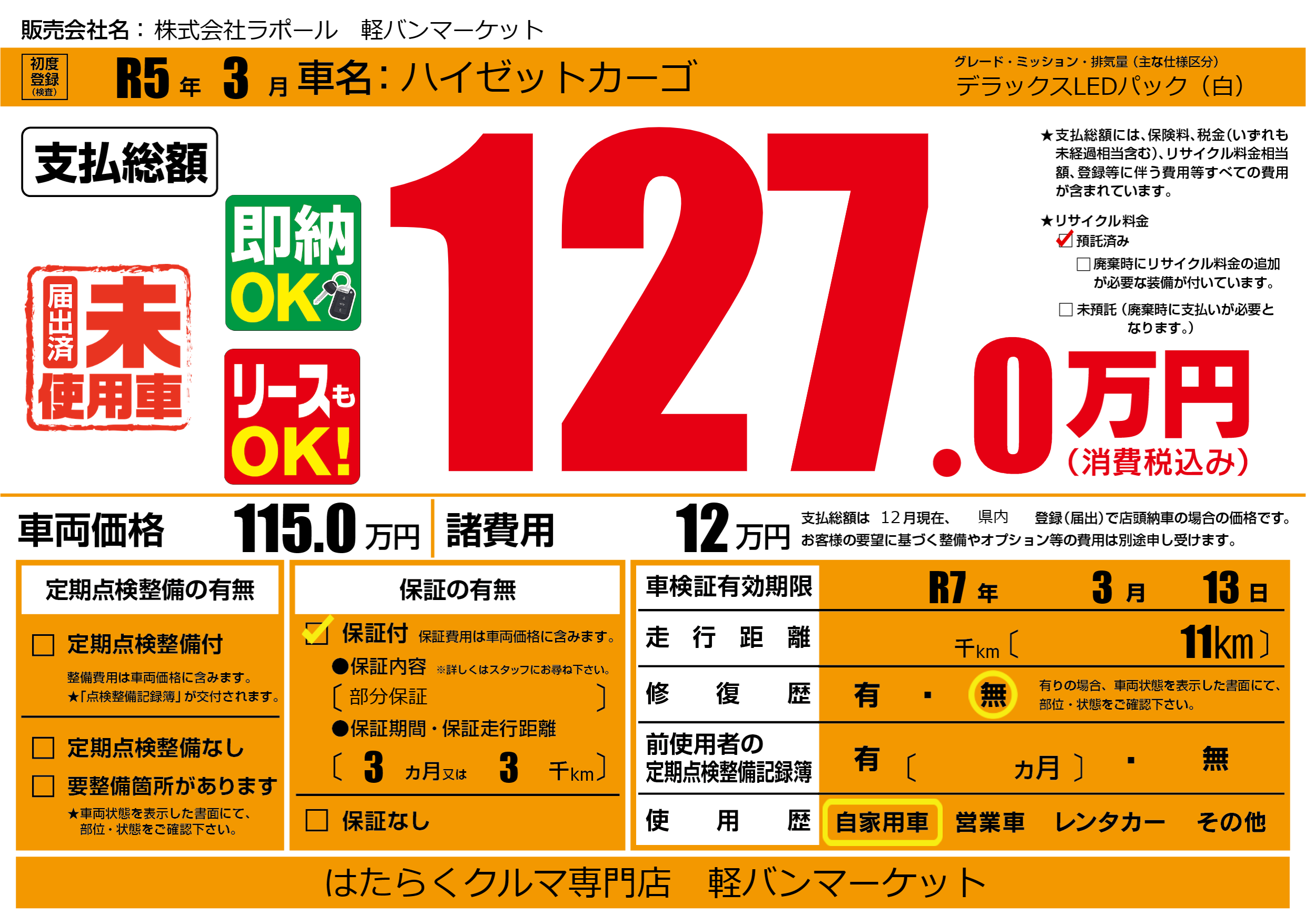 | 車検制限 | R7年 3月 13日 | ||