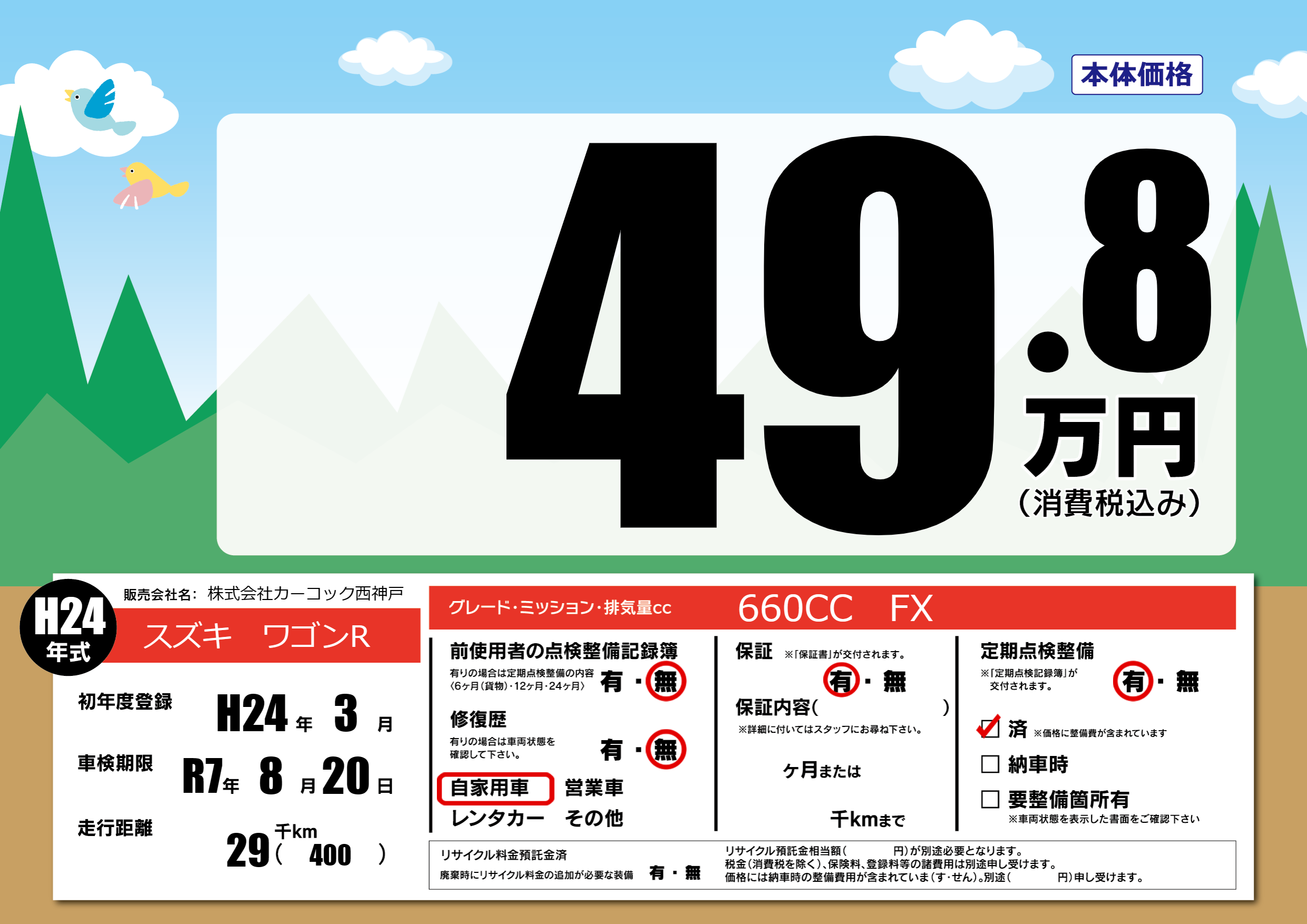 | 定期点検整備 | 定期点検整備あり 定期点検整備済み | ||