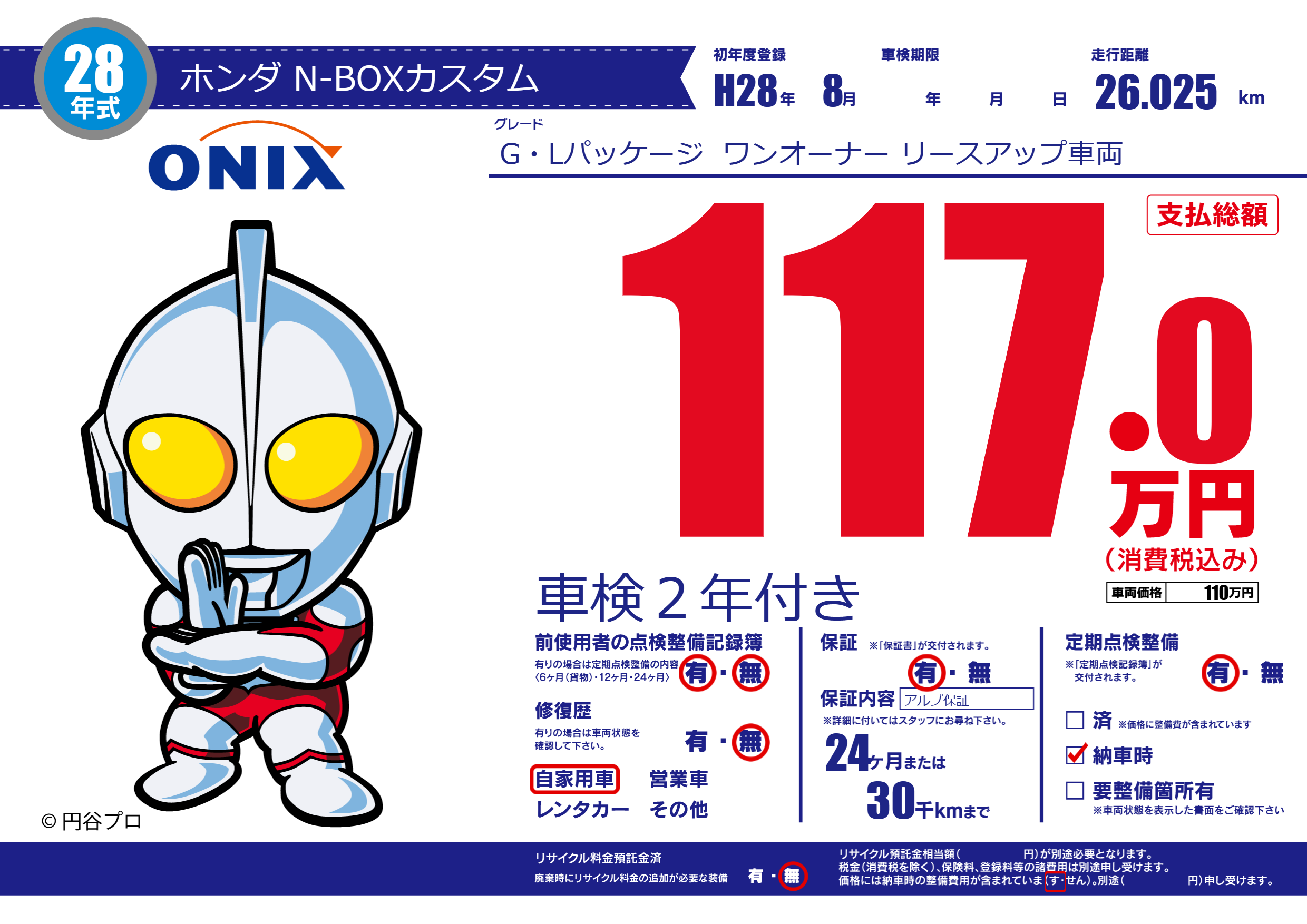 保証付き 保証内容(アルプ保証) 24ヶ月または(30)千kmまで |