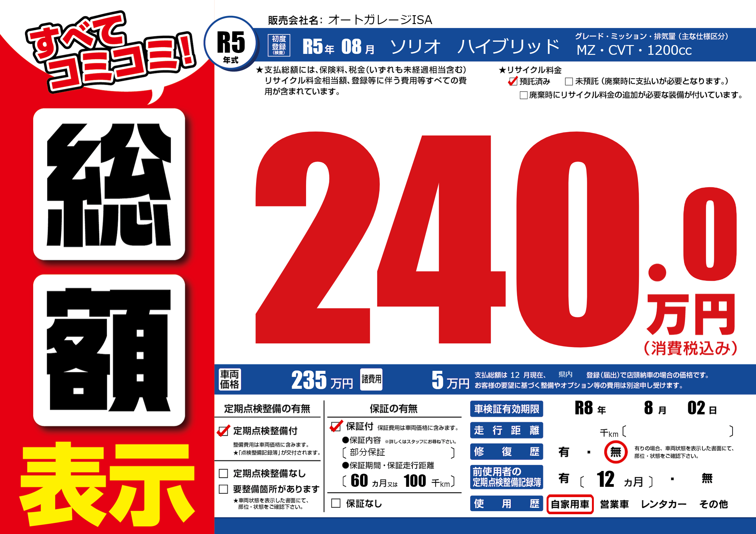 | 車名 | ソリオ ハイブリッド | グレード ミッション 排気量 |