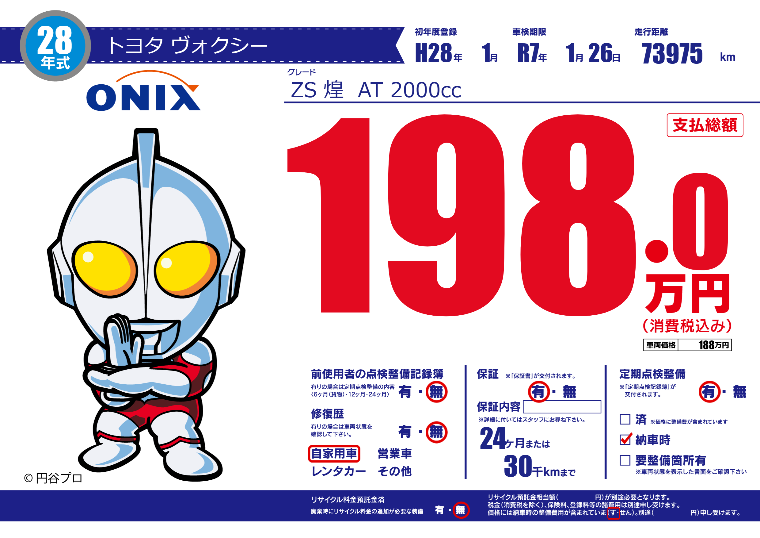 保証付き 保証内容(---) 24ヶ月または(30)千kmまで |