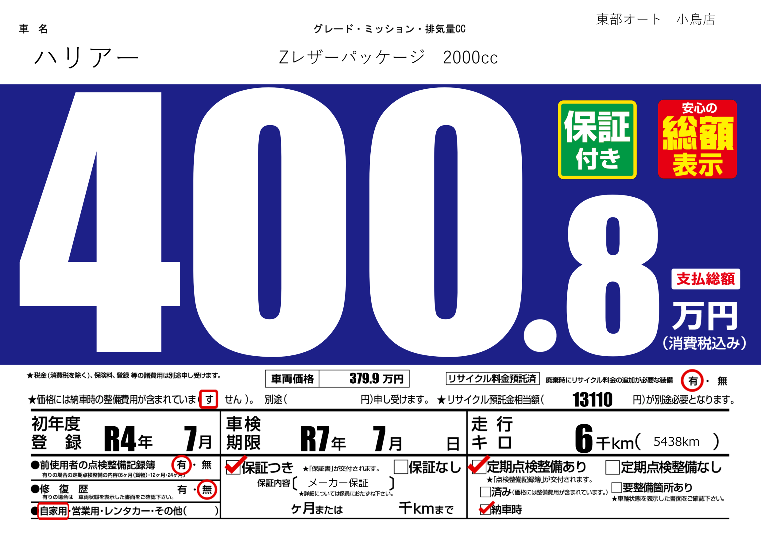 保証付き 保証内容( メーカー保証) ---ヶ月または()千kmまで |