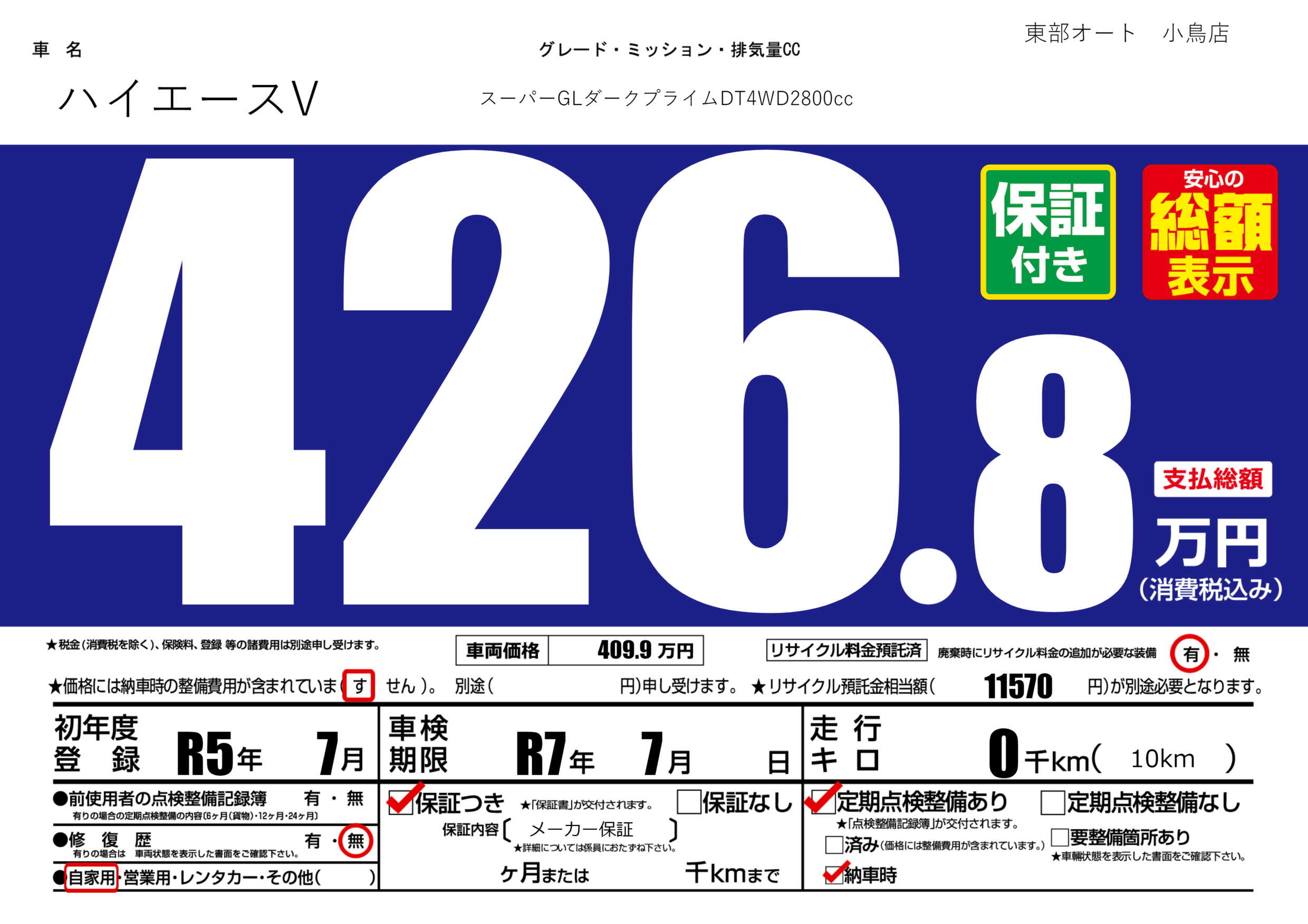 保証付き 保証内容( メーカー保証) ---ヶ月または()千kmまで |