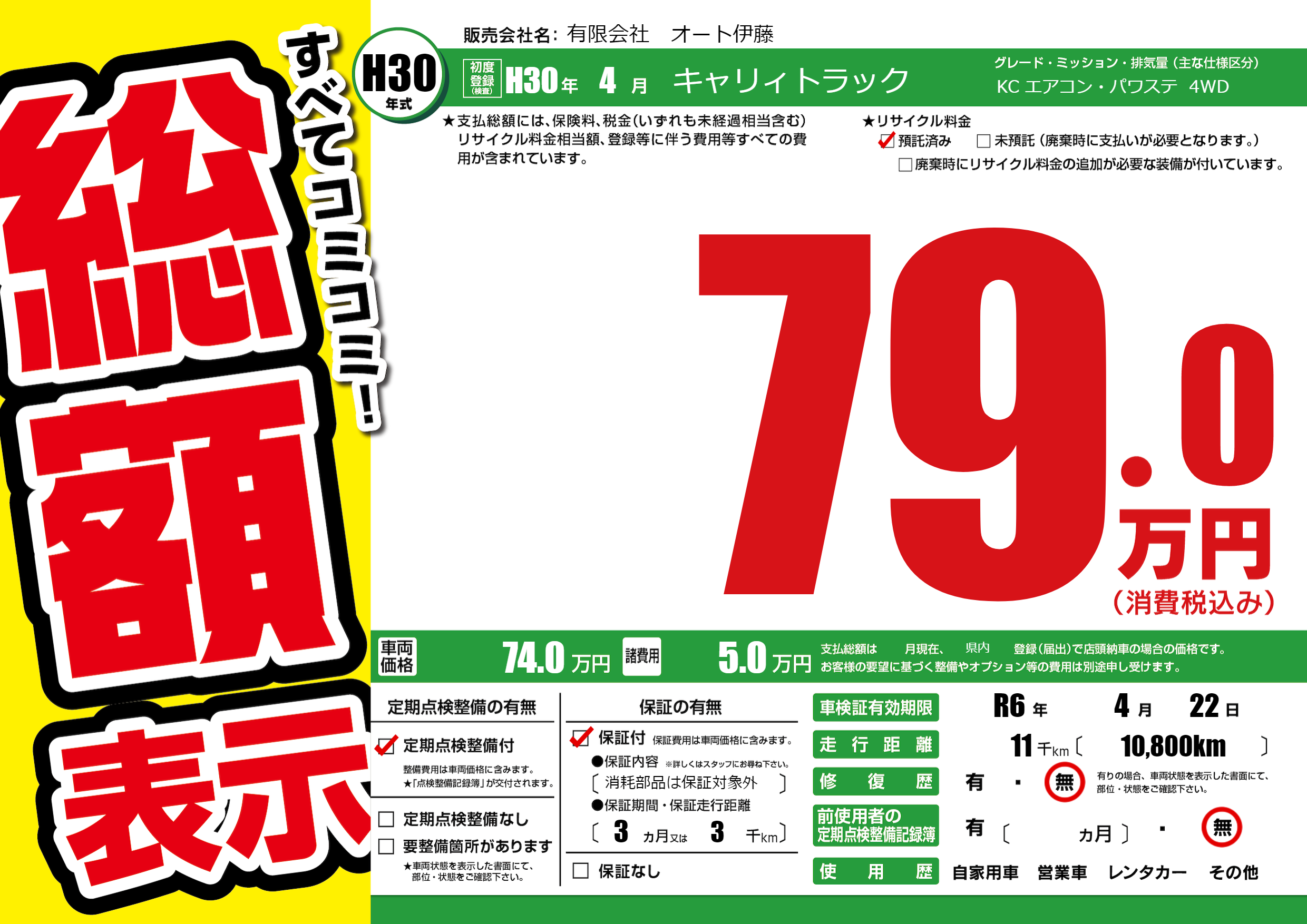 保証付き 保証内容(消耗部品は保証対象外) 3ヶ月または(3)千kmまで |