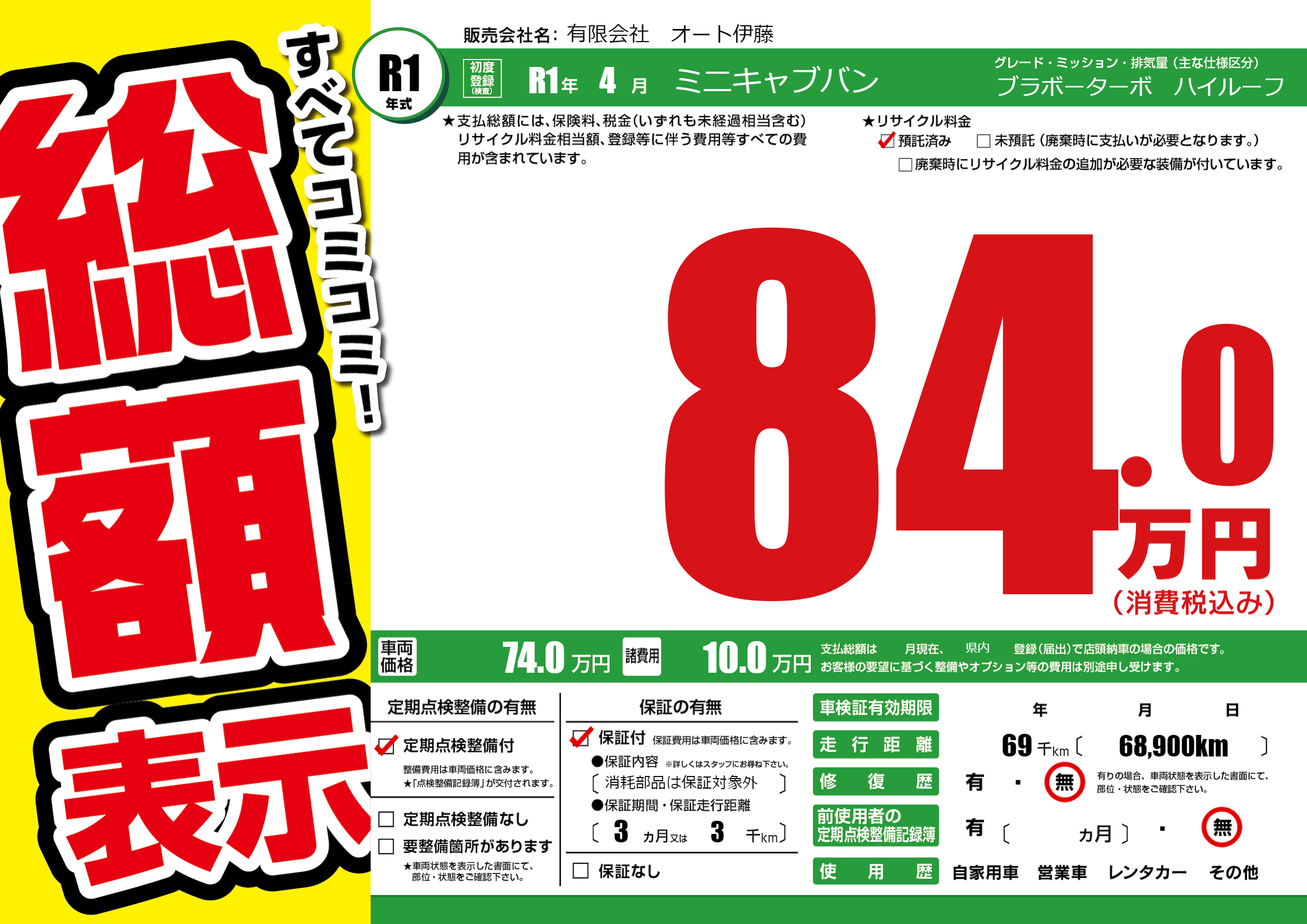 | 走行キロ | 6.9万km | 初年度登録 | R1年4月 |