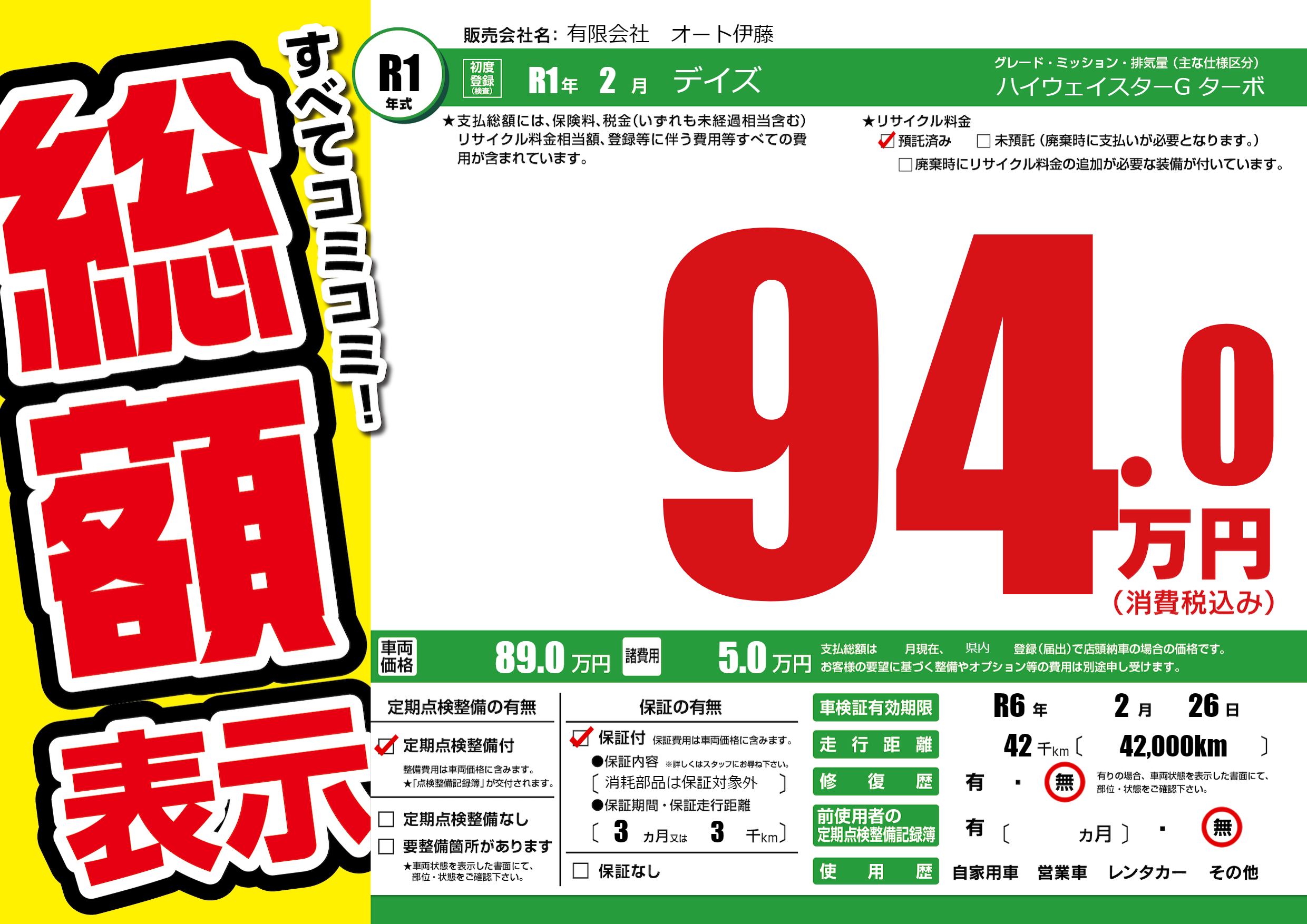 | 車検制限 | R6年 2月 26日 | ||