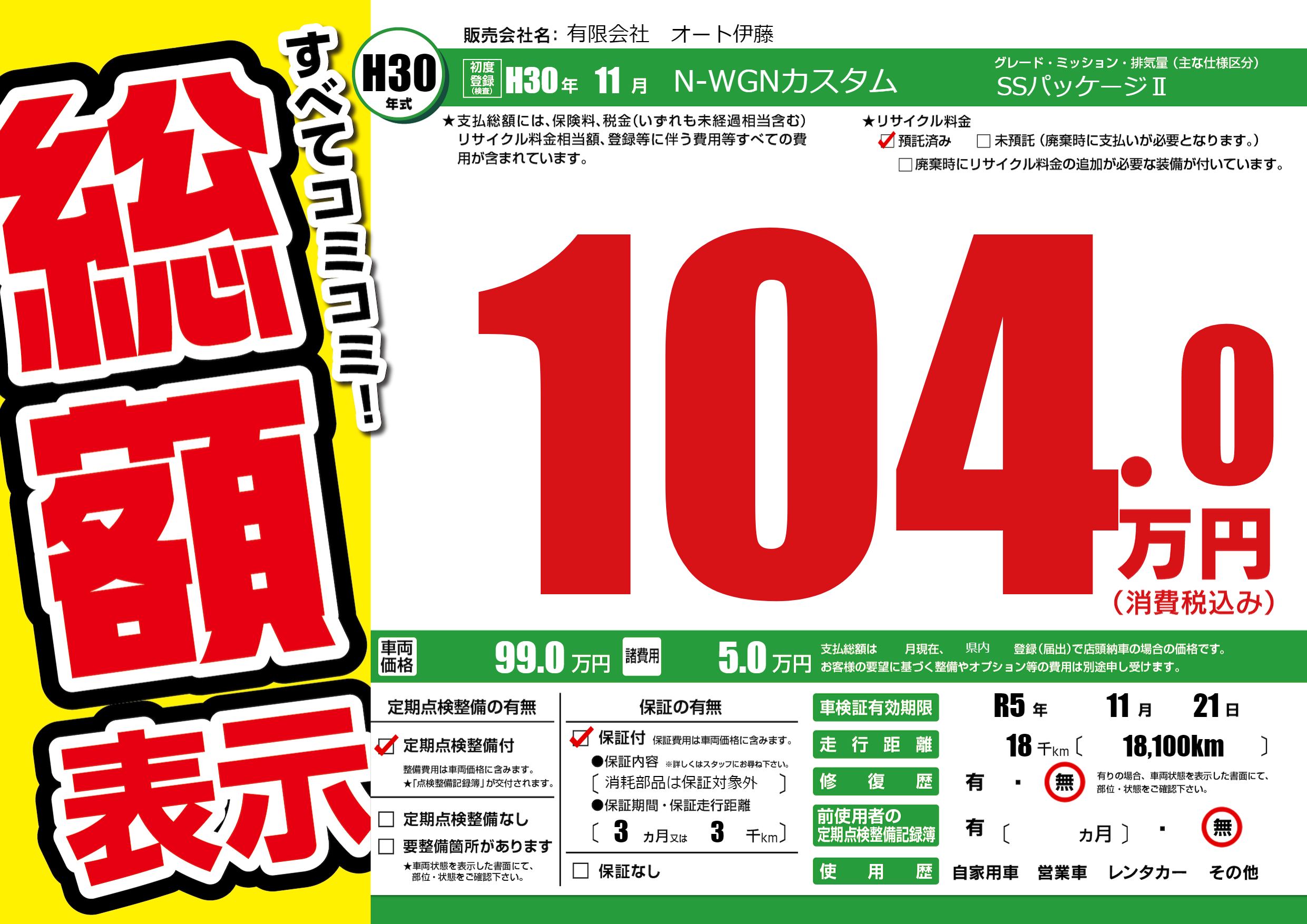 | 車名 | N-WGNカスタム | グレード ミッション 排気量 |