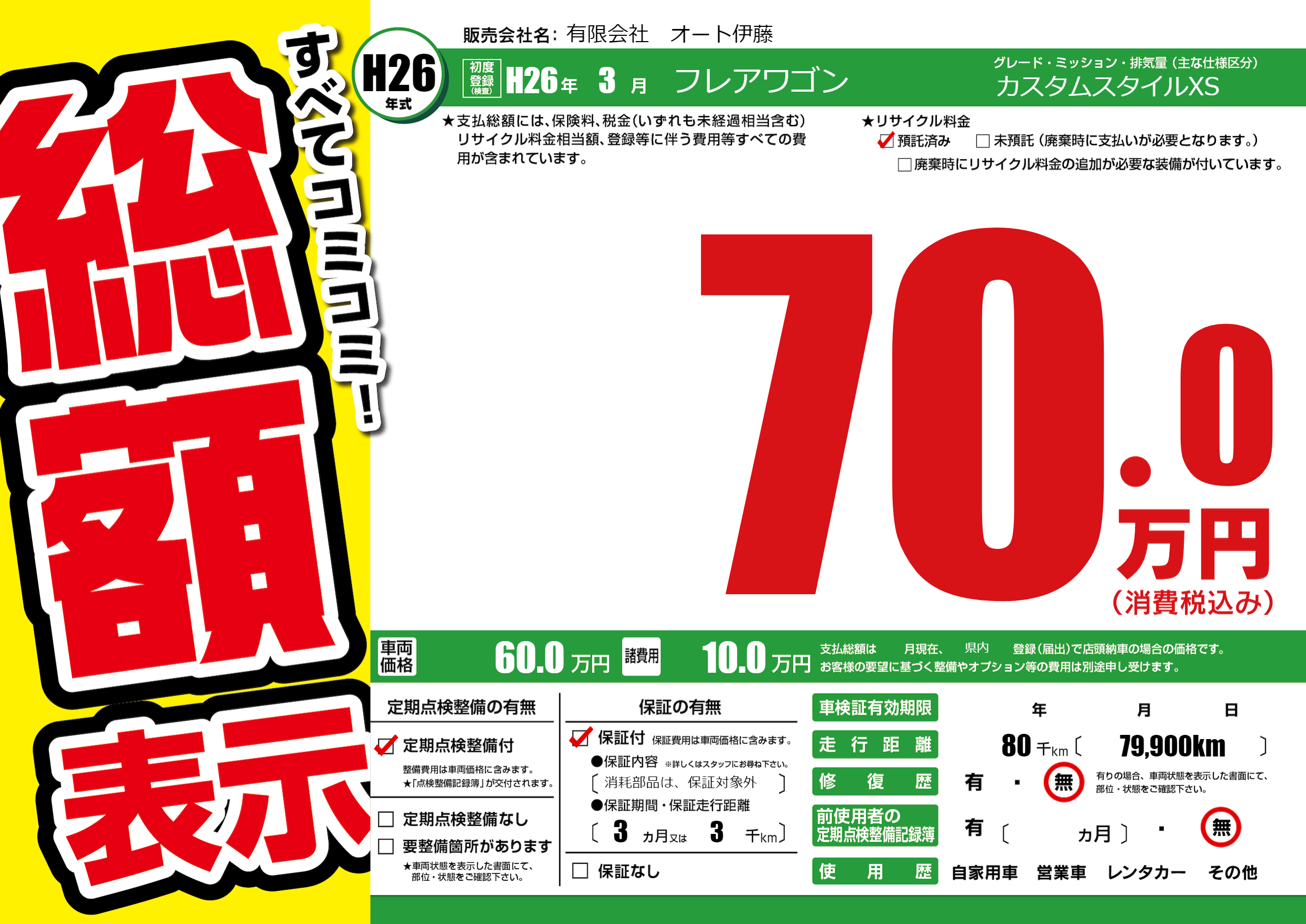 | 車名 | フレアワゴン | グレード ミッション 排気量 |