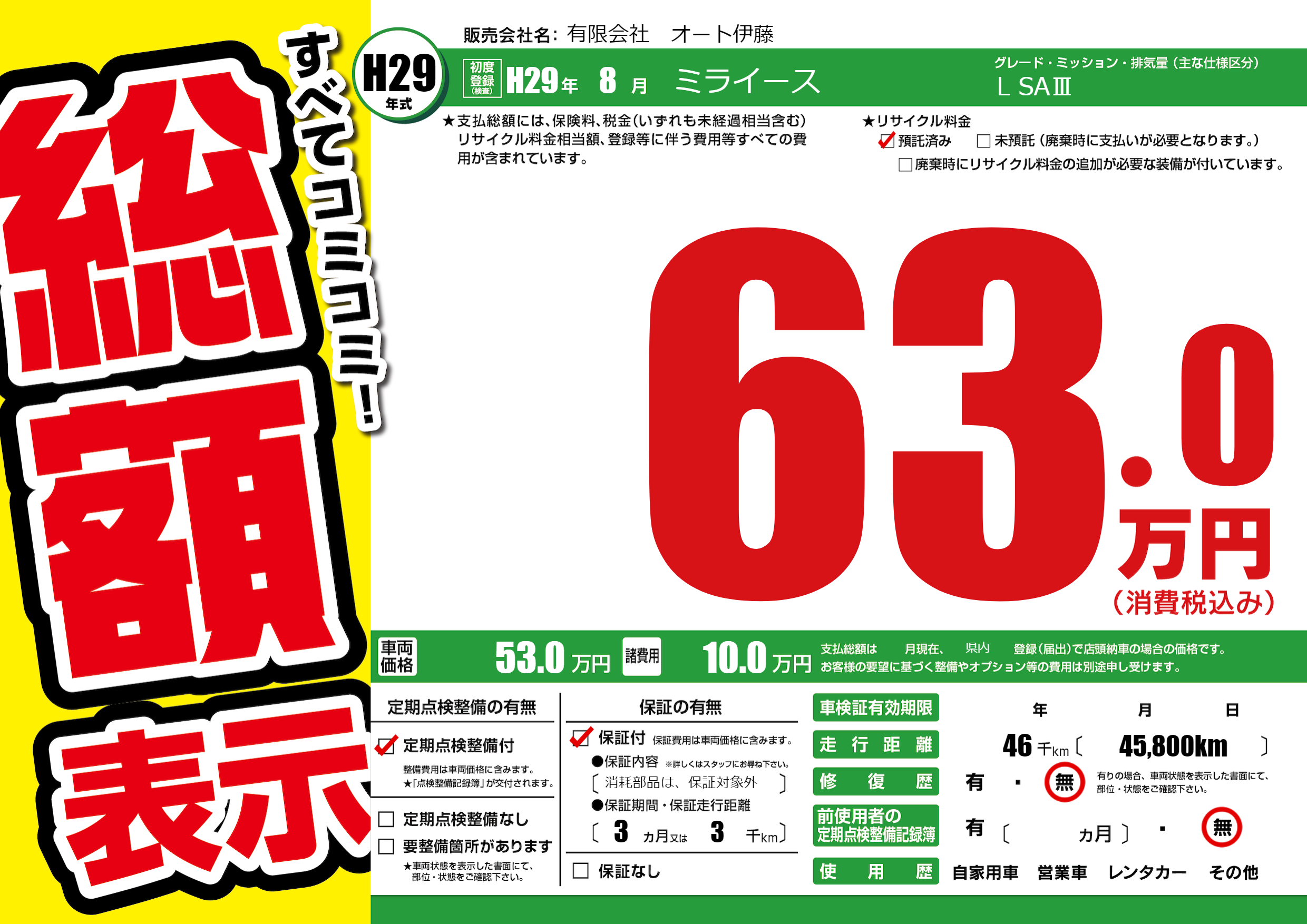 | 車名 | ミライース | グレード ミッション 排気量 |
