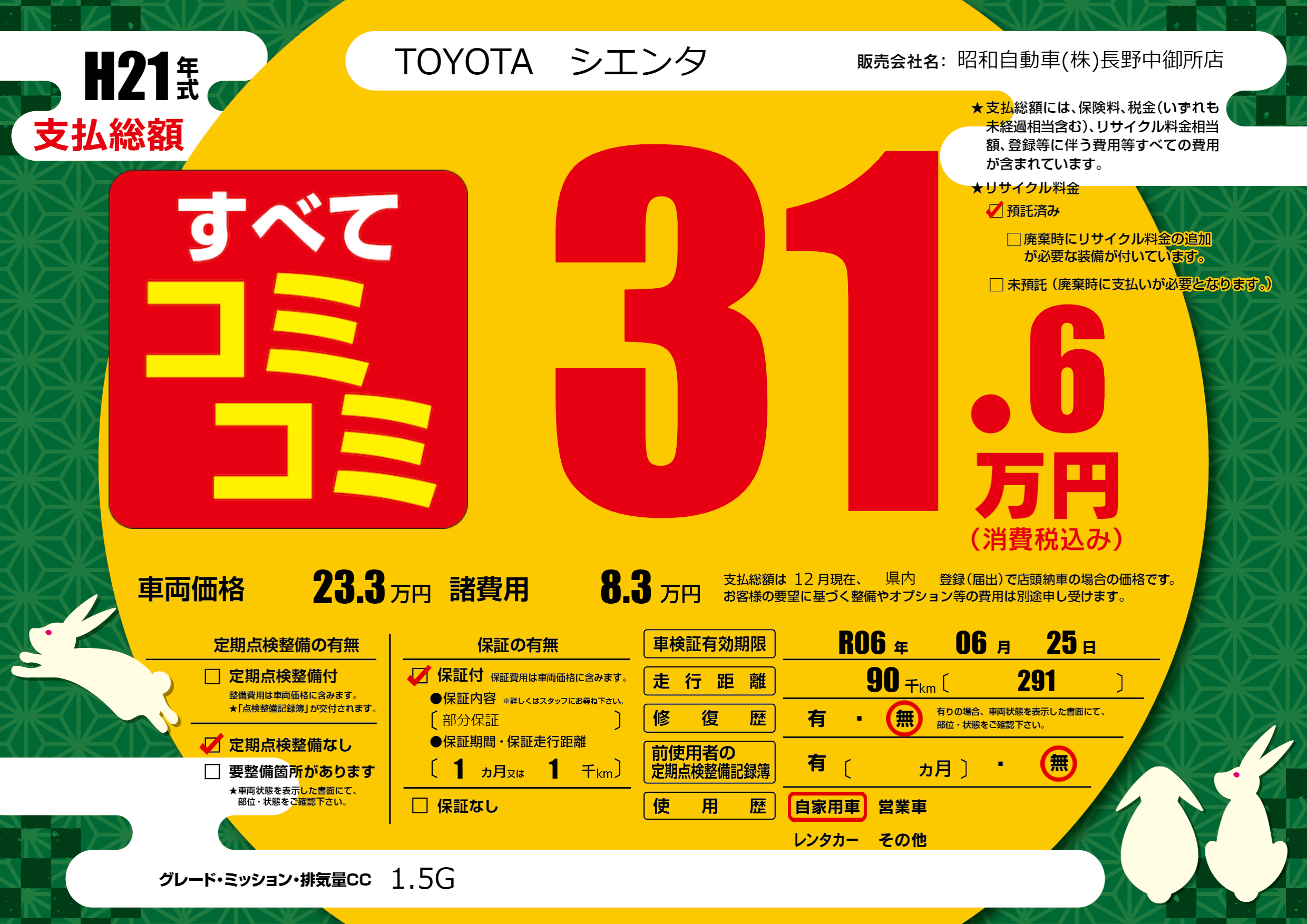 なし | 車検制限 | R06年06月25月 |