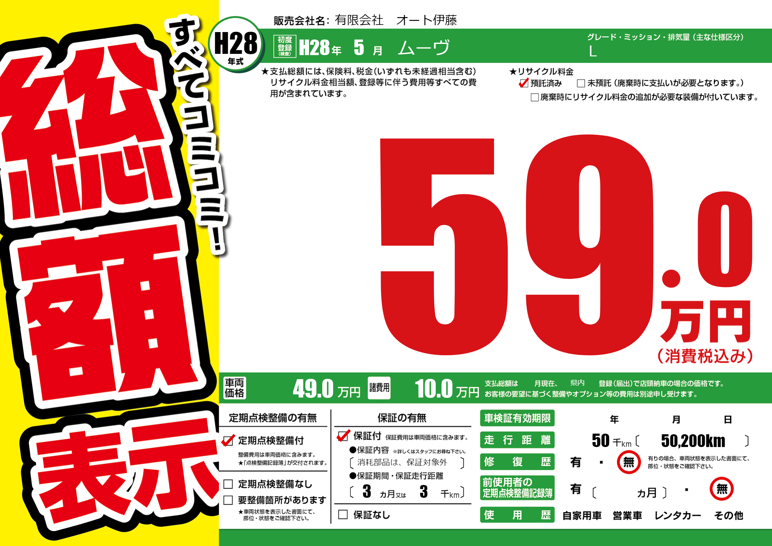| 走行キロ | 5万km | 初年度登録 | H28年5月 |