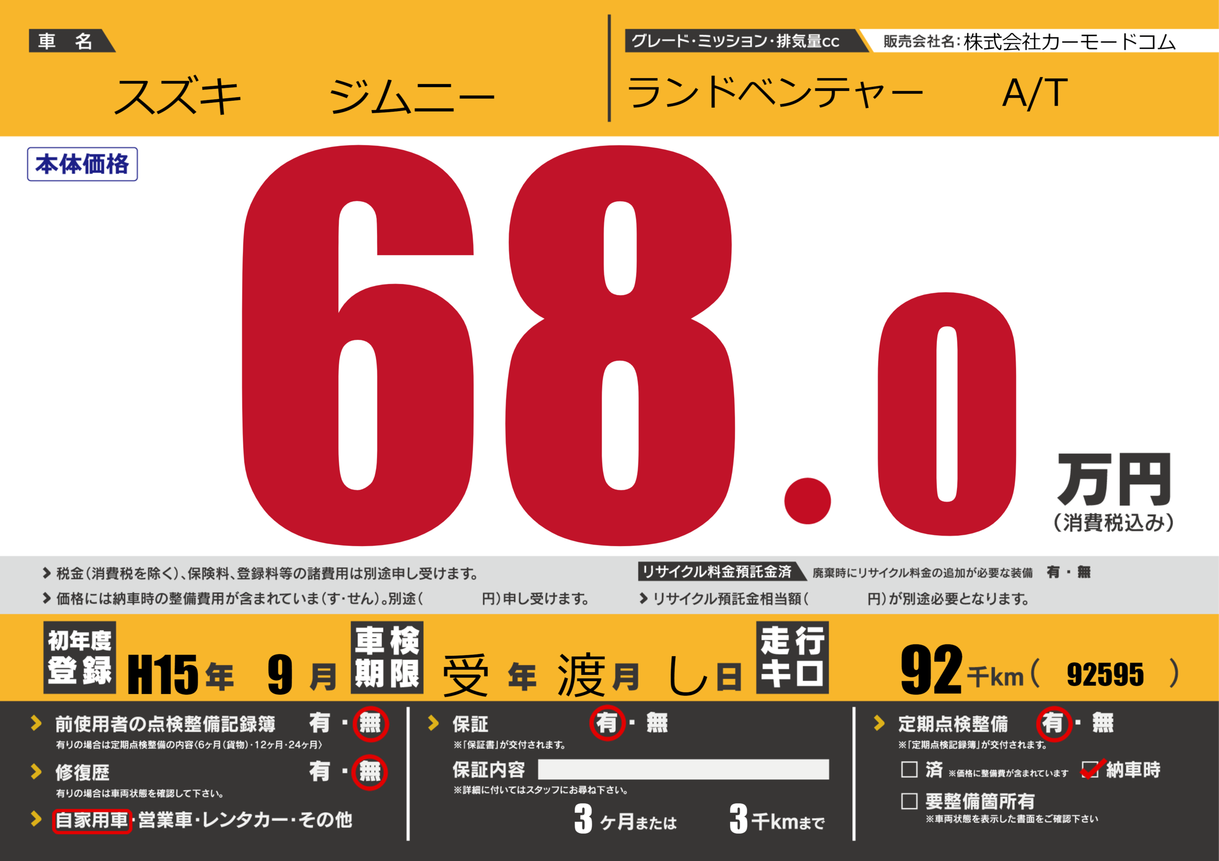 保証付き 保証内容(---) 3ヶ月または(3)千kmまで |