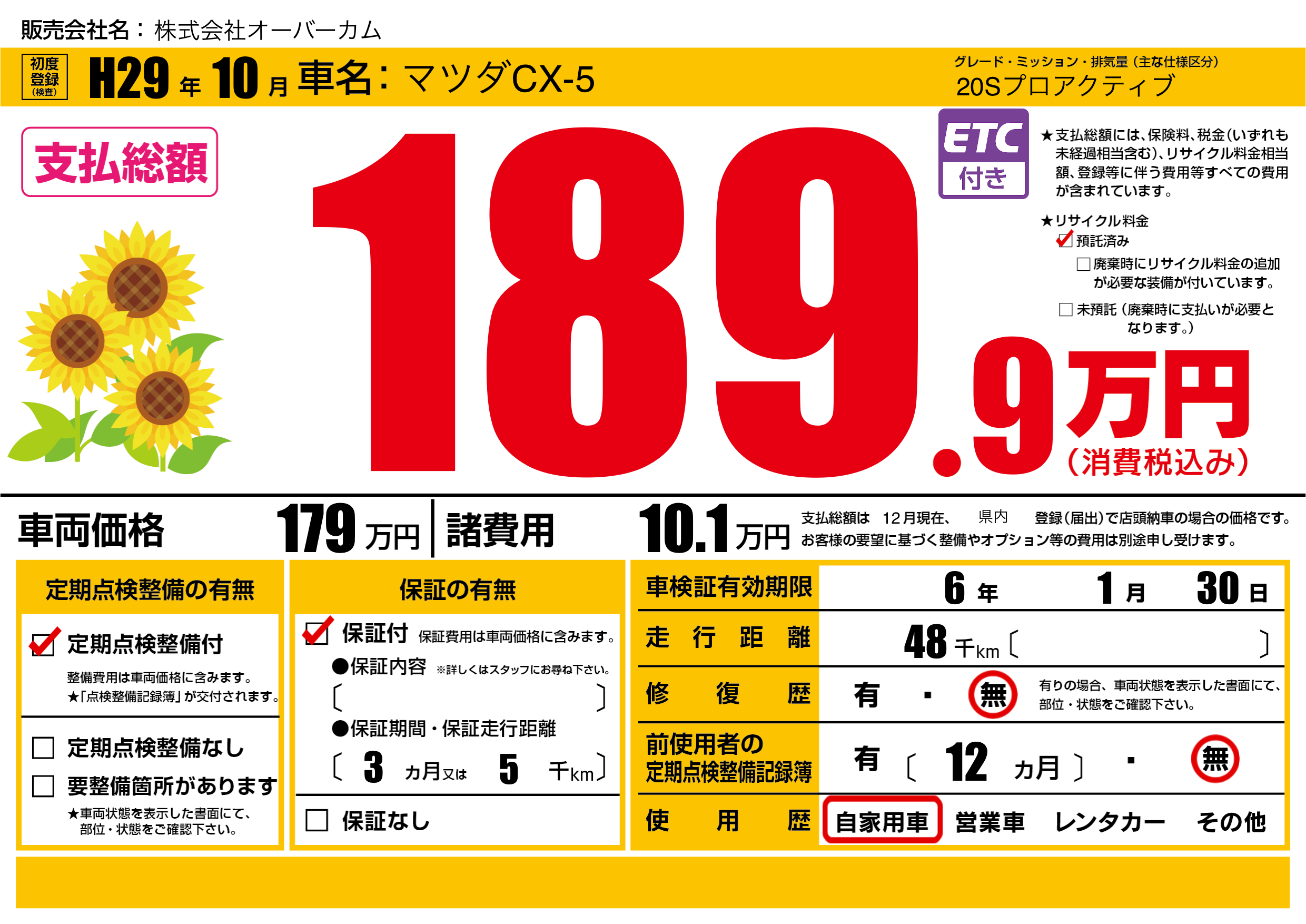 | 初年度登録 | H29年10月 | ||