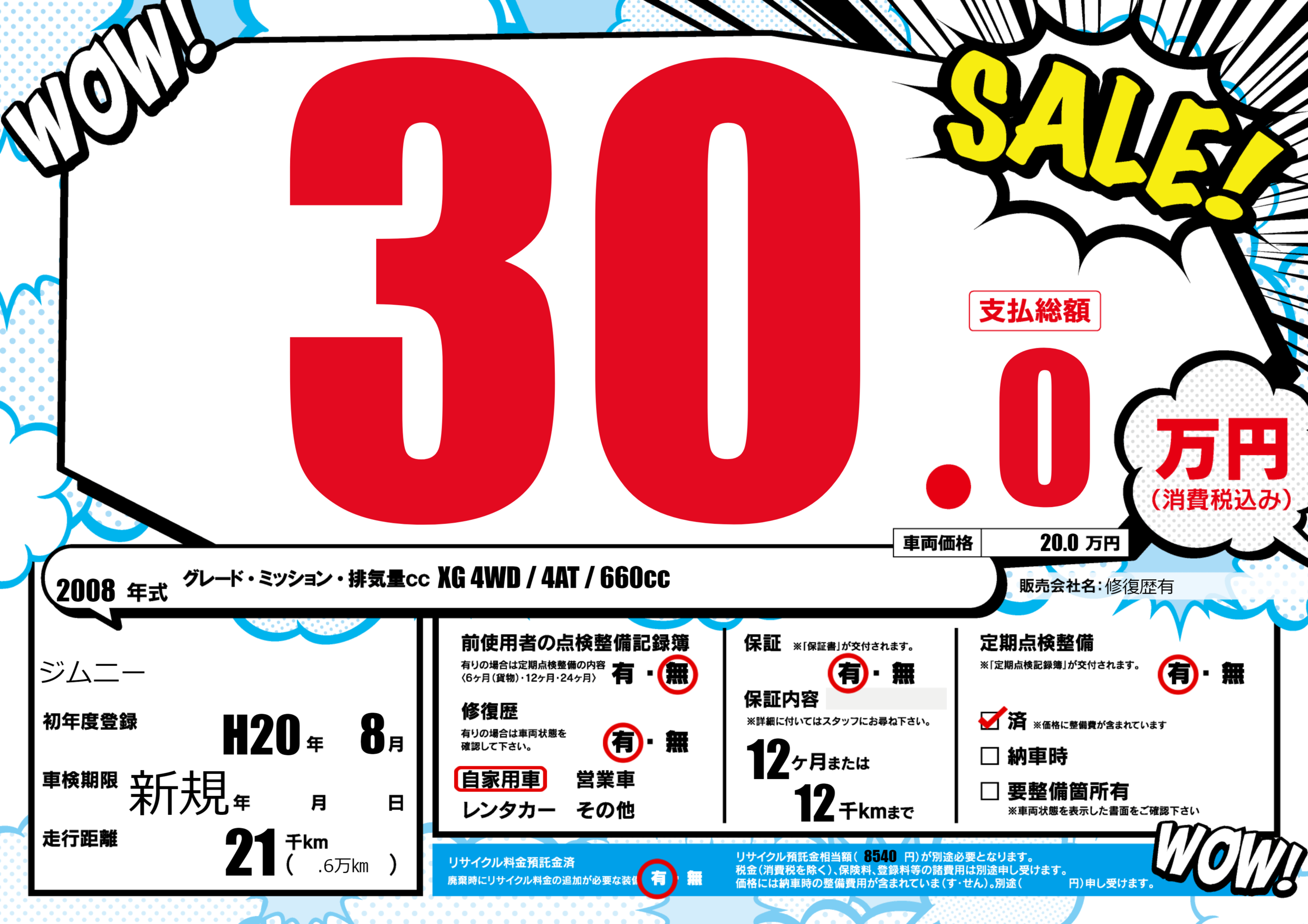 | 定期点検整備 | 定期点検整備あり 定期点検整備済み | ||