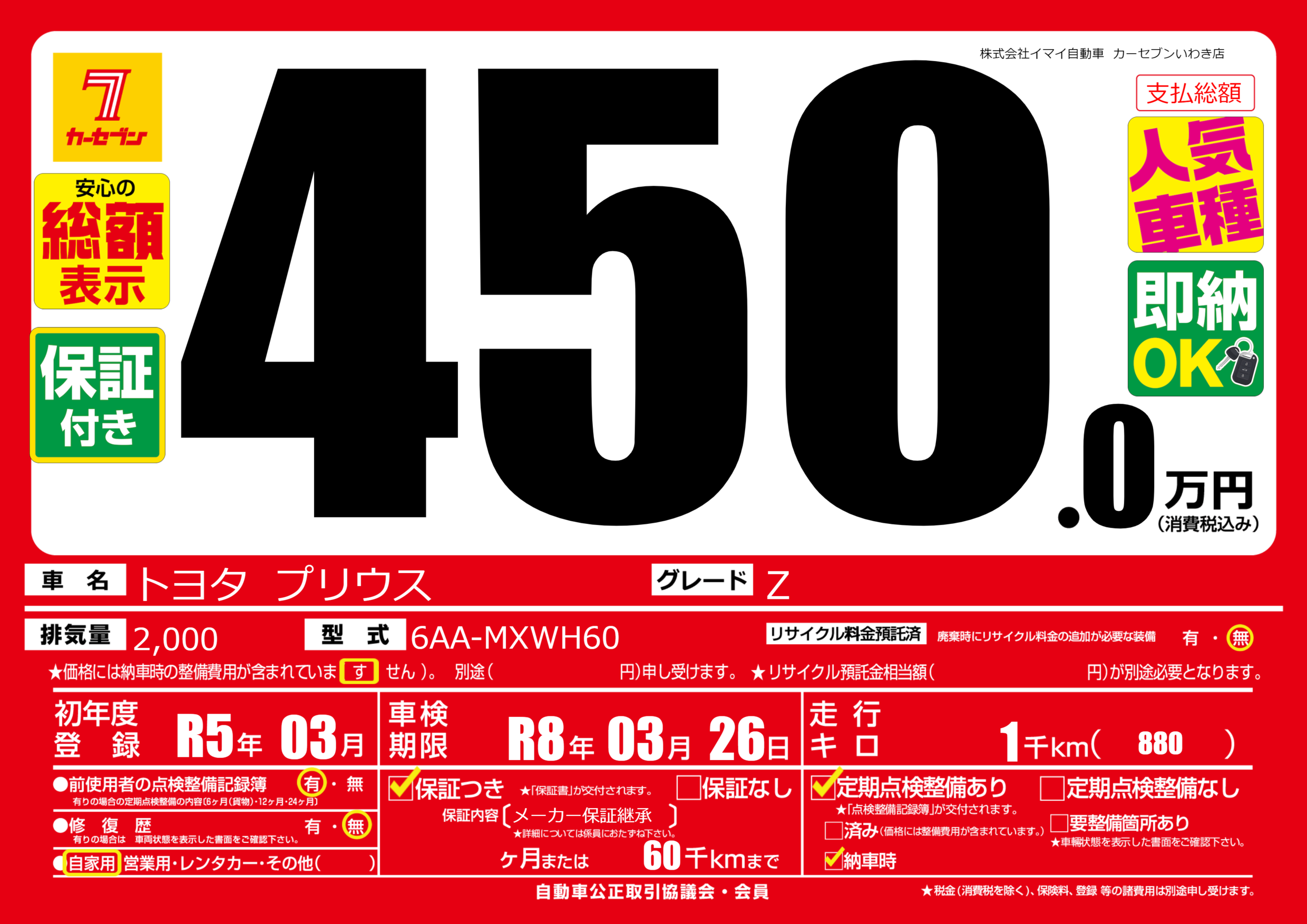 | 車検制限 | R8年 03月 26日 | ||