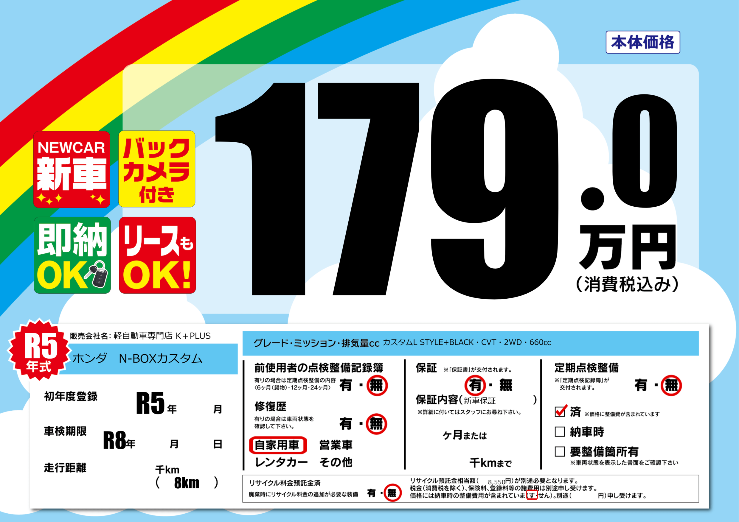 | 車名 | ホンダ N-BOXカスタム | グレード ミッション 排気量 |