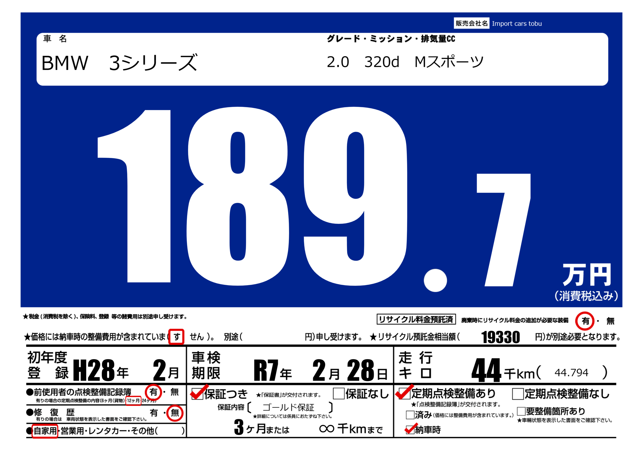 保証付き 保証内容( ゴールド保証) 3ヶ月または(∞)千kmまで |