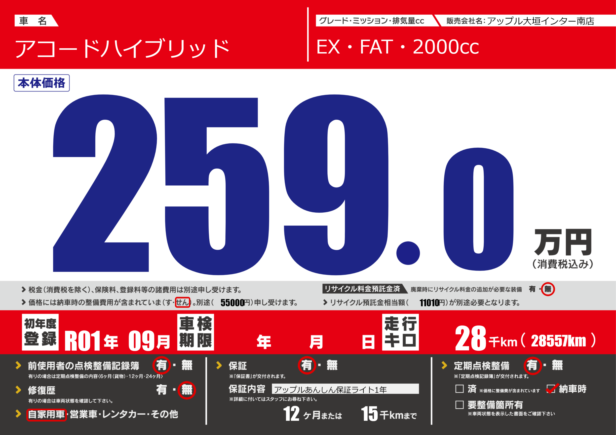 | 車名 | アコードハイブリッド | グレード ミッション 排気量 |