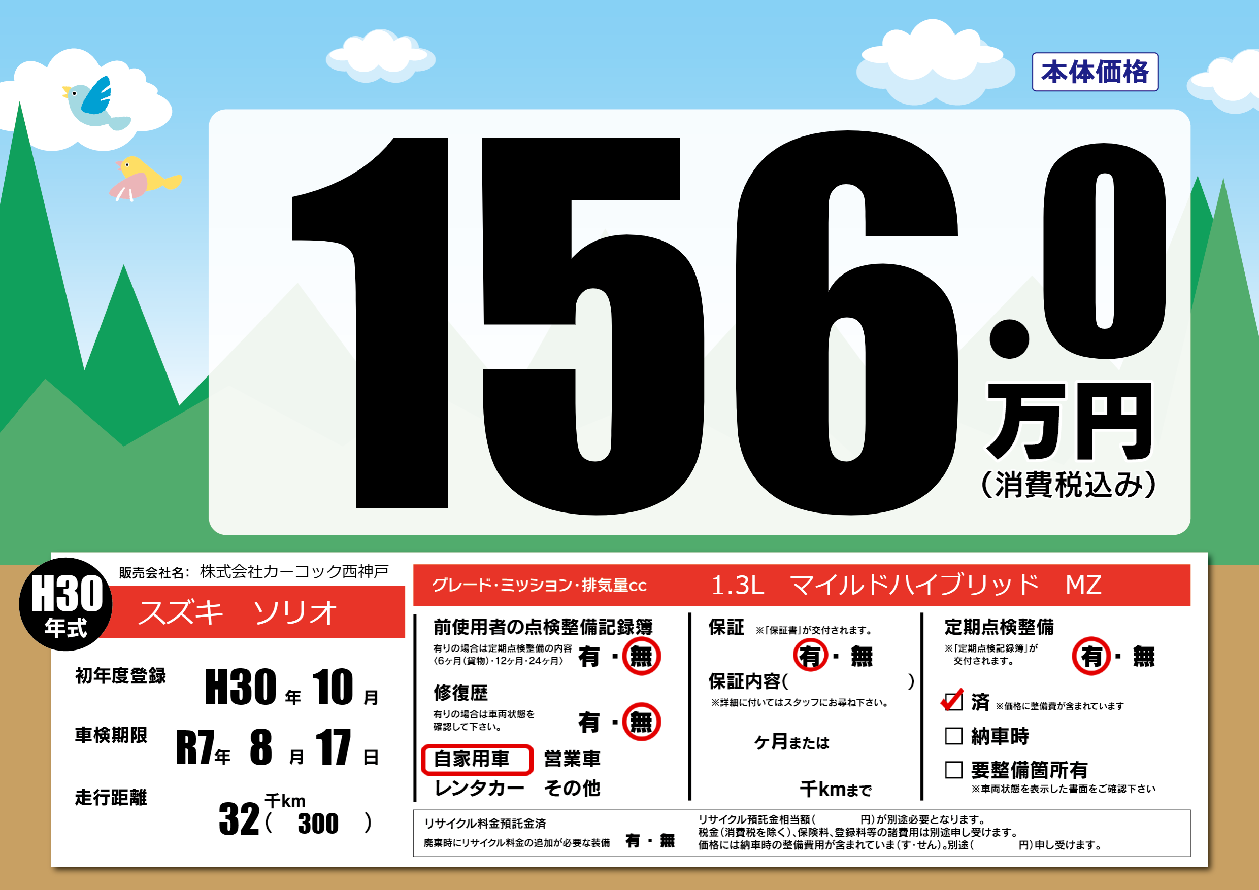 | 定期点検整備 | 定期点検整備あり 定期点検整備済み | ||