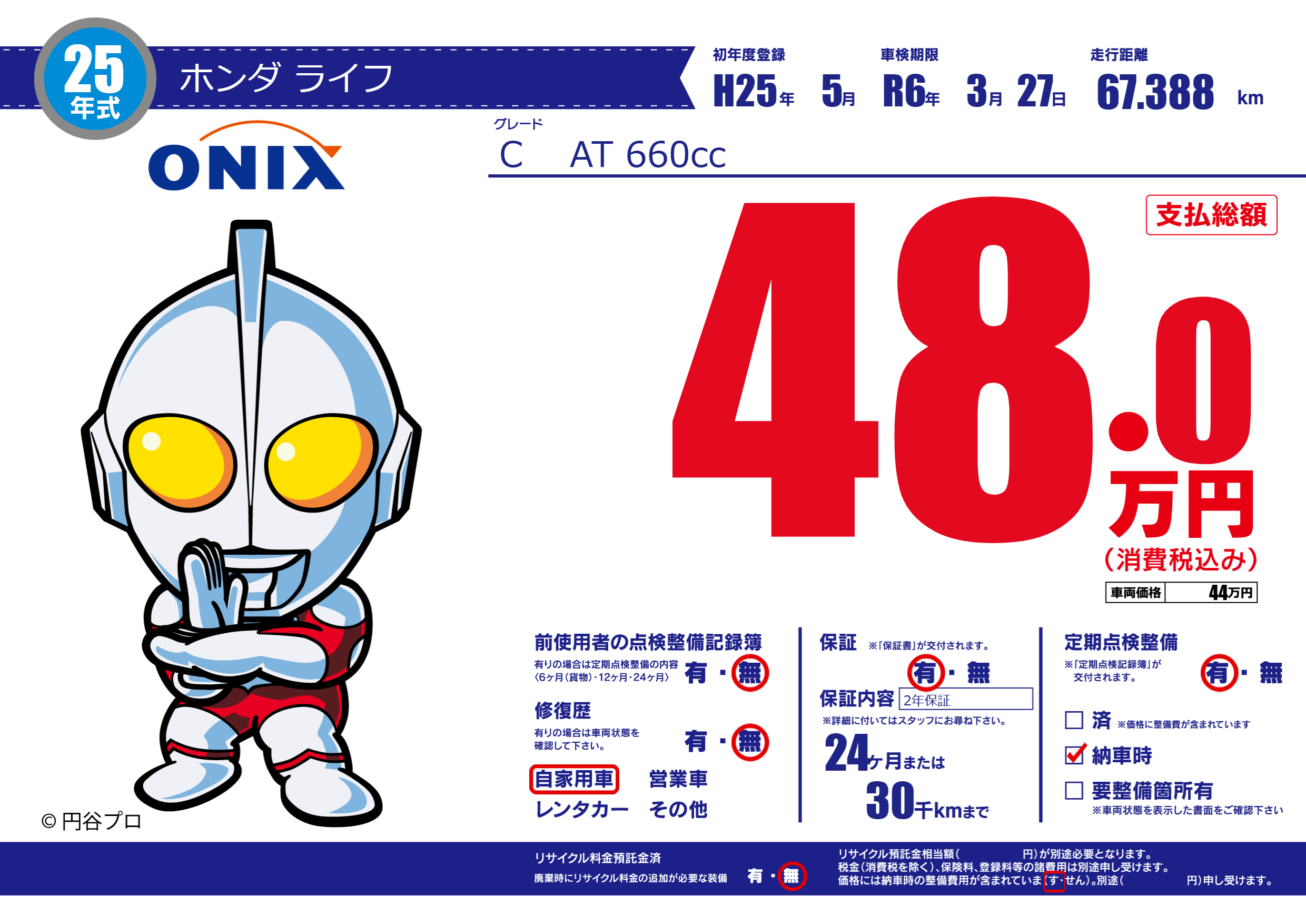 | 車名 | ホンダ ライフ | グレード ミッション 排気量 |