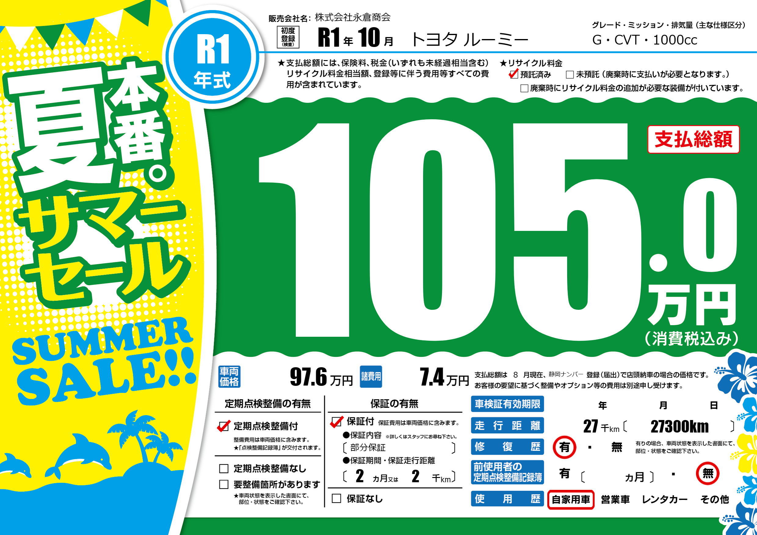 | 走行キロ | 2.7万km | 初年度登録 | R1年10月 |