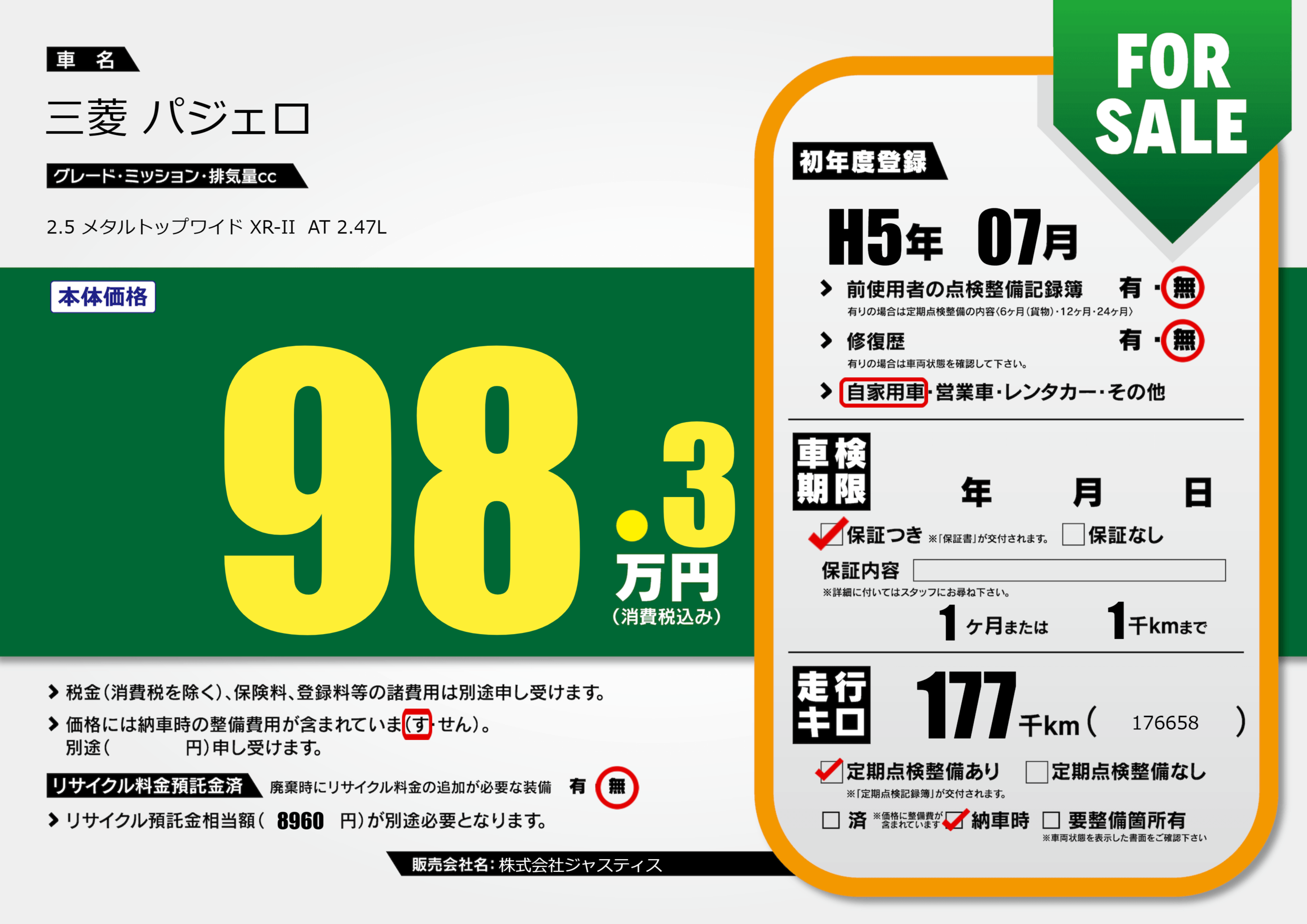 | 車名 | 三菱 パジェロ | グレード ミッション 排気量 |