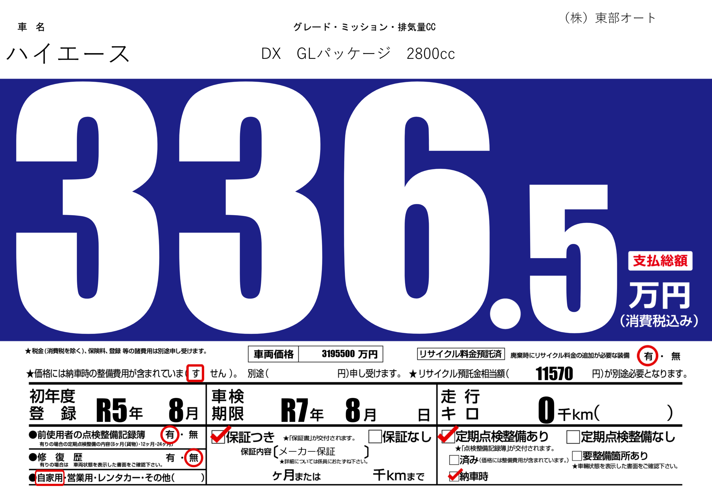 | 車検制限 | R7年 8月 - 日 | ||