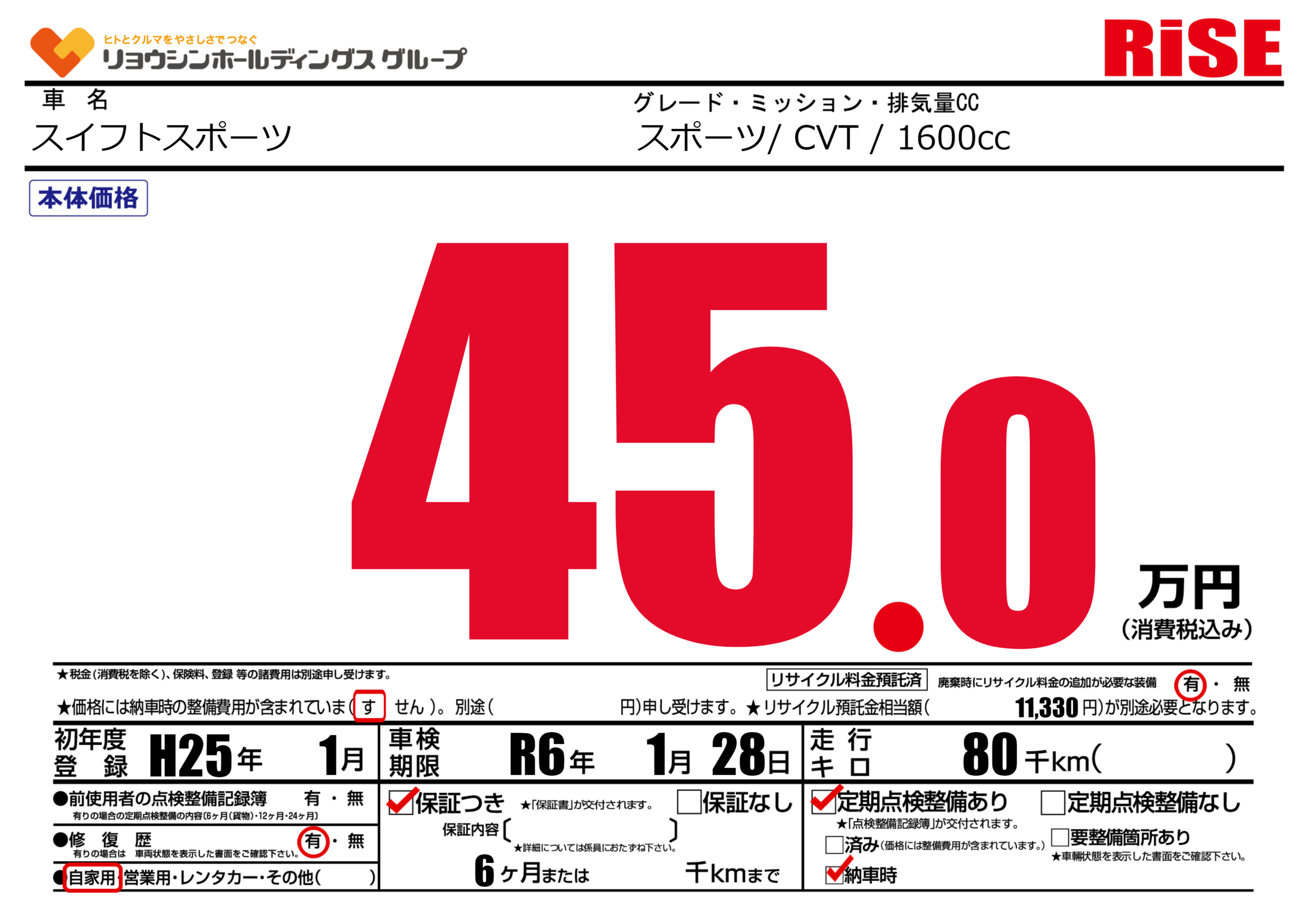 | 走行キロ | 8万km | ||