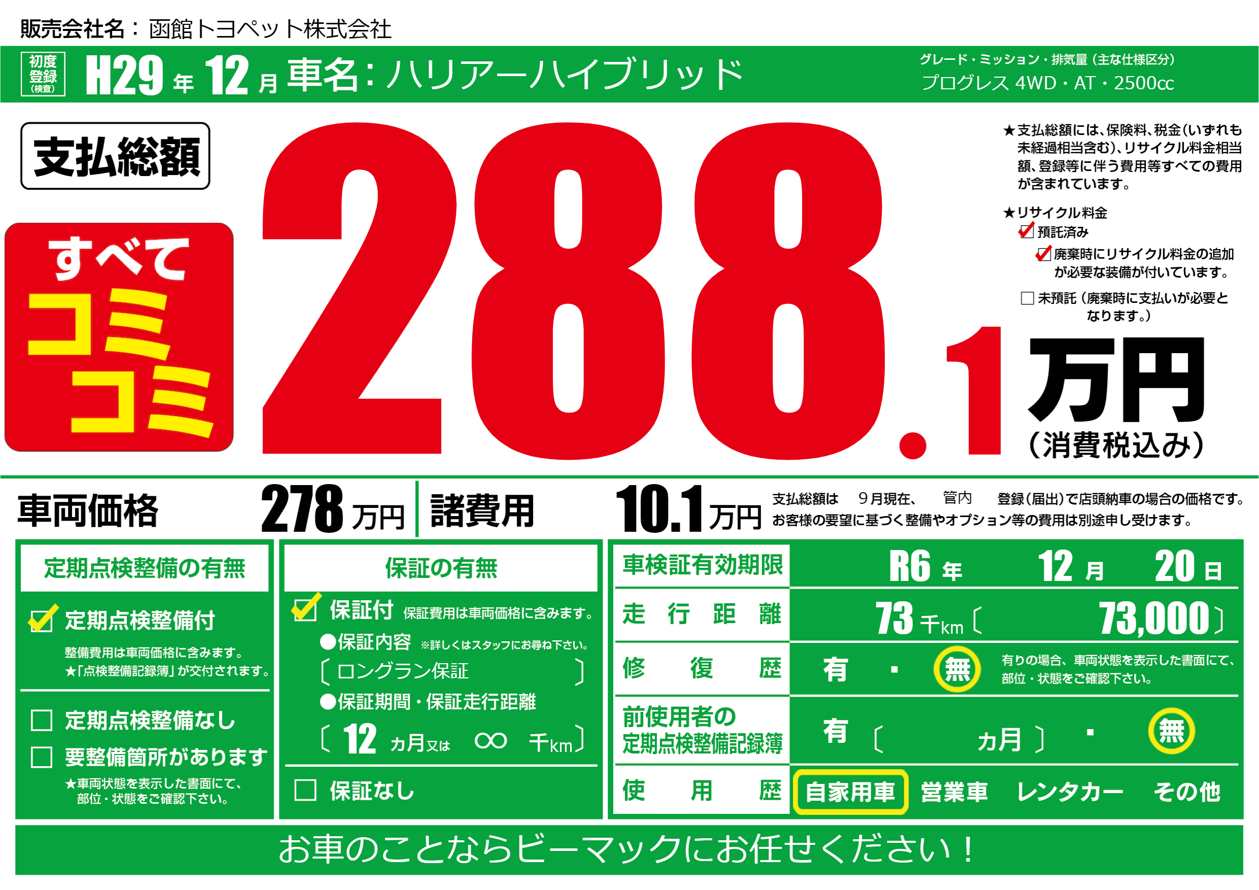 | 走行キロ | 7.3万km | 初年度登録 | H29年12月 |