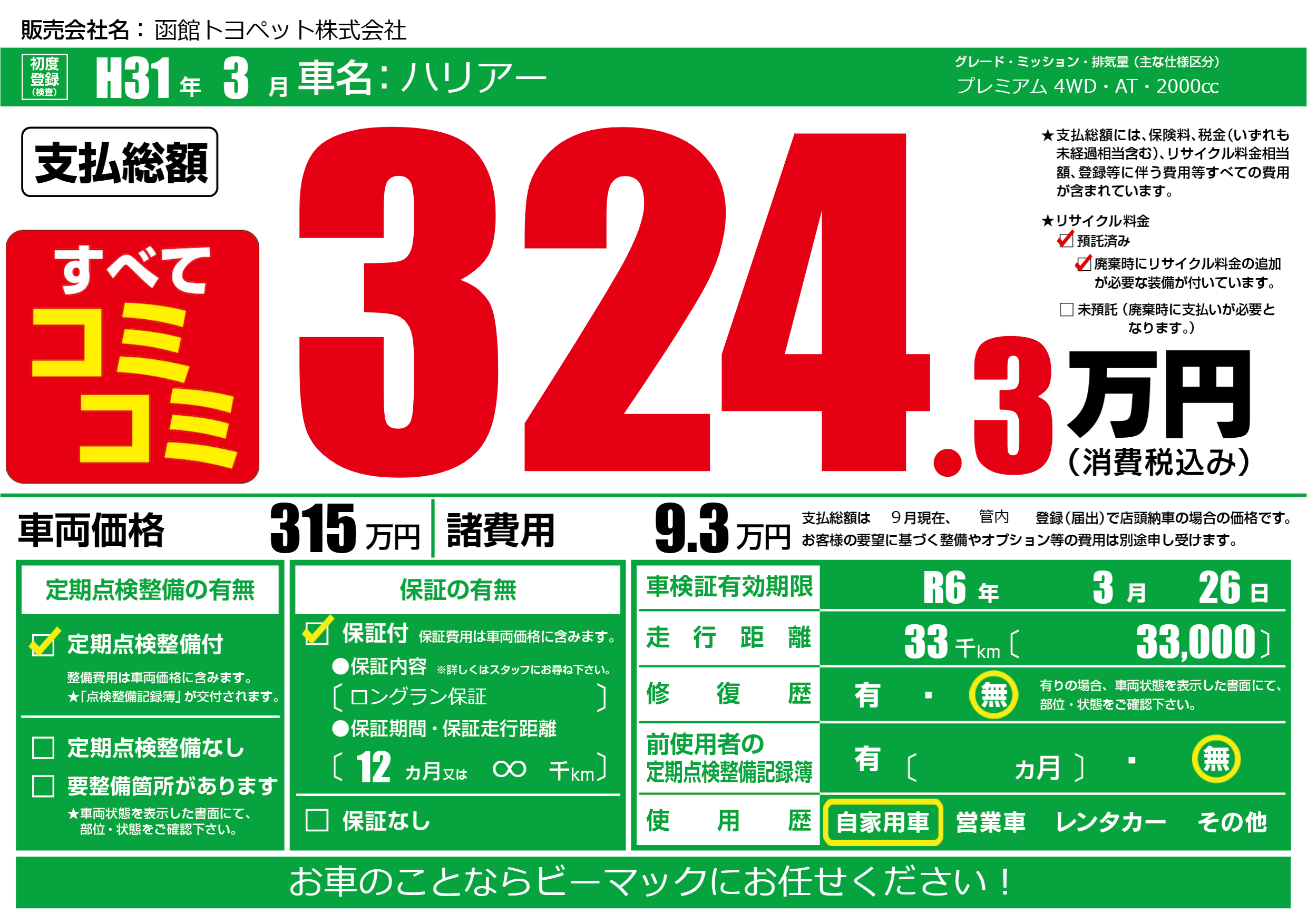 | 定期点検整備 | 定期点検整備あり | ||