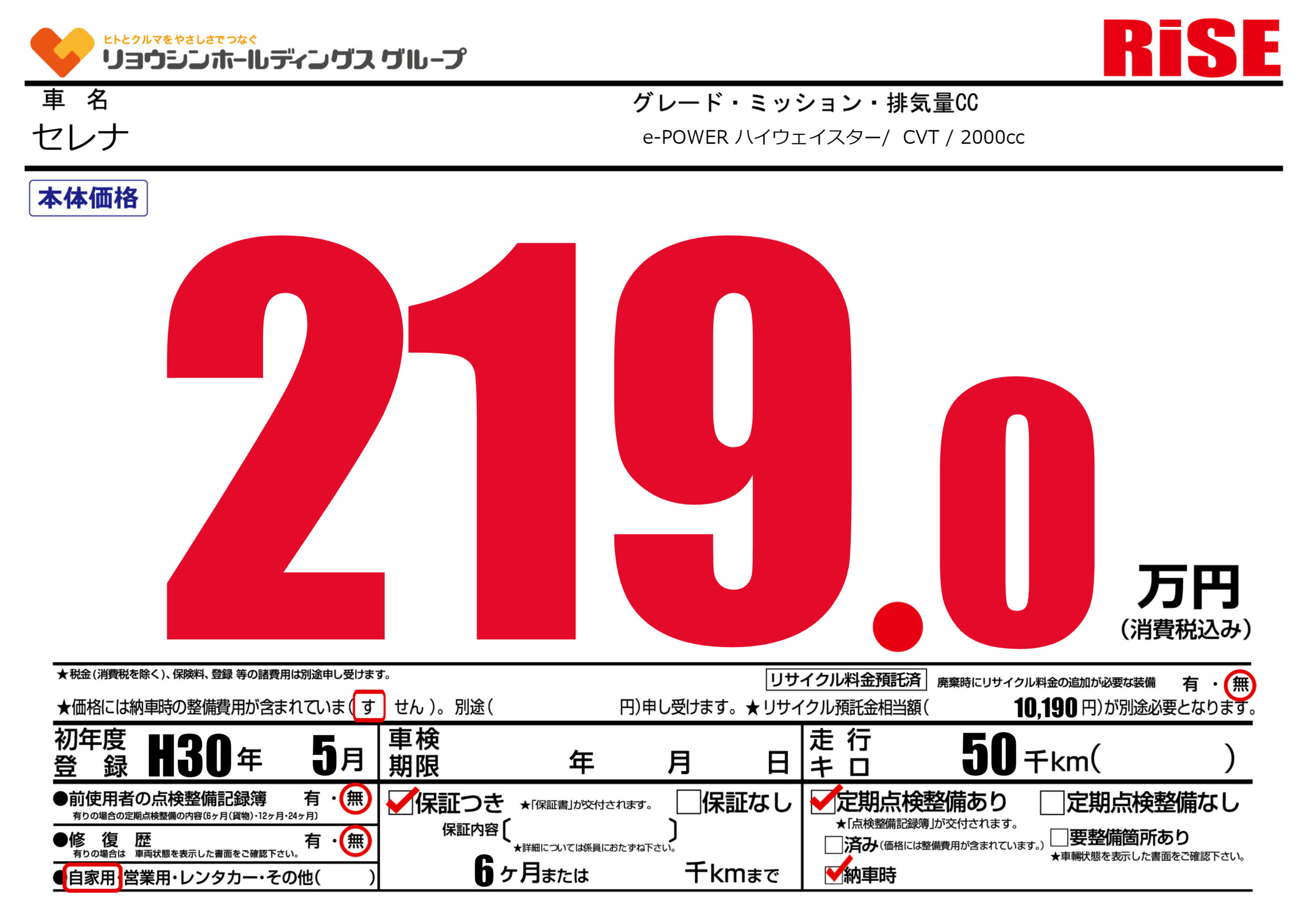 | 定期点検整備 | 定期点検整備あり 納車時あり | ||