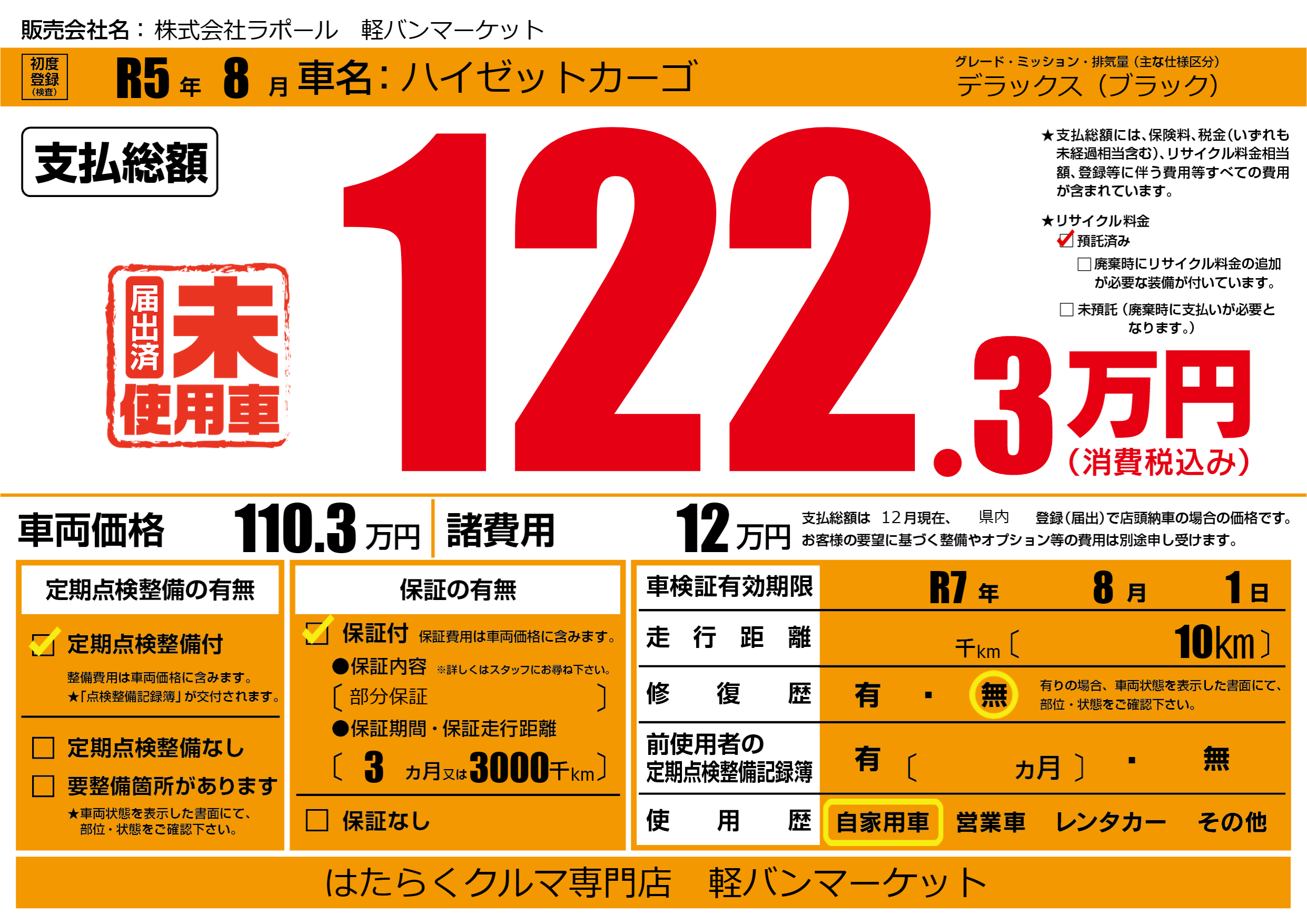 | 走行キロ | - | 初年度登録 | R5年8月 |