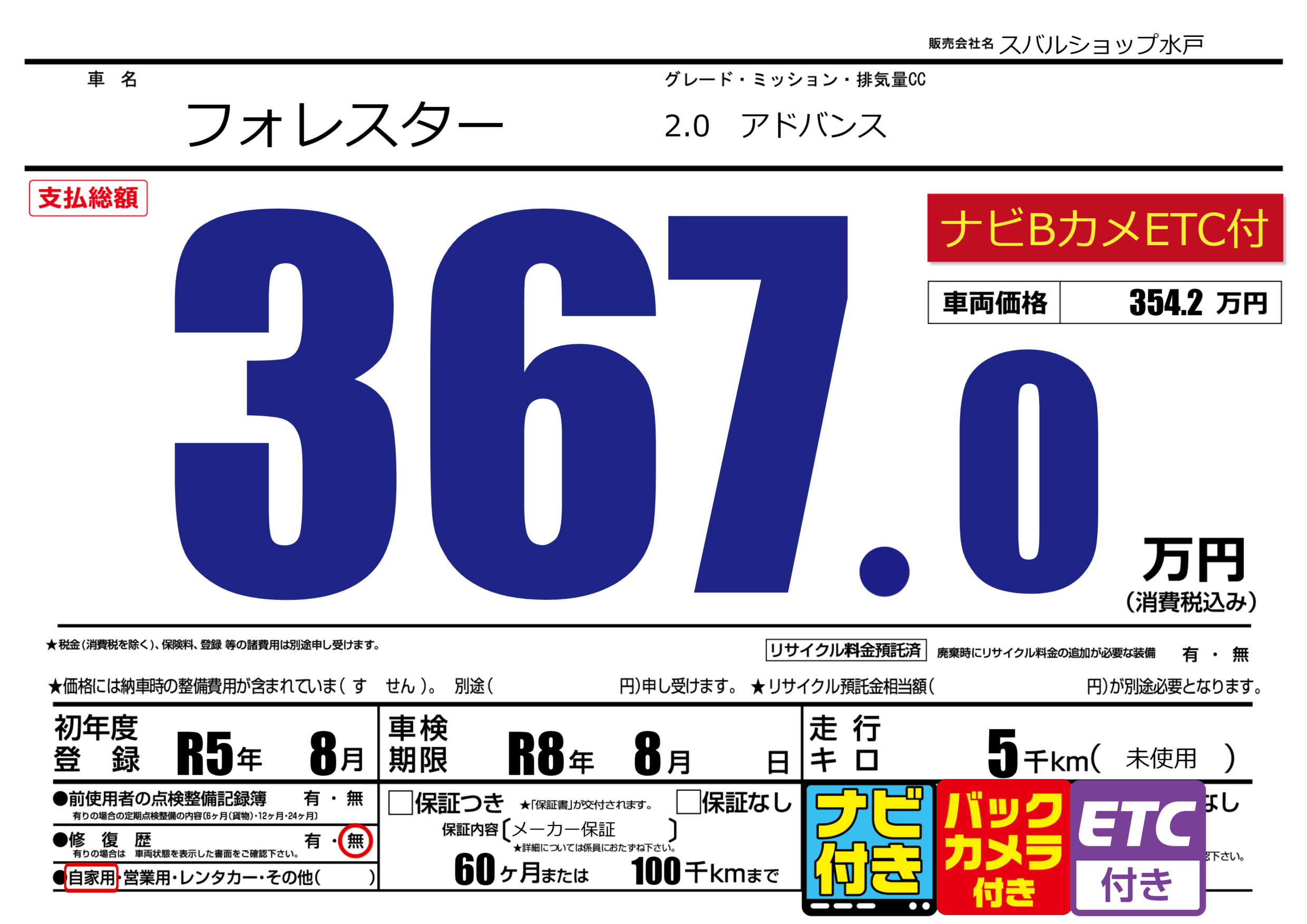 初年度登録 R5年8月