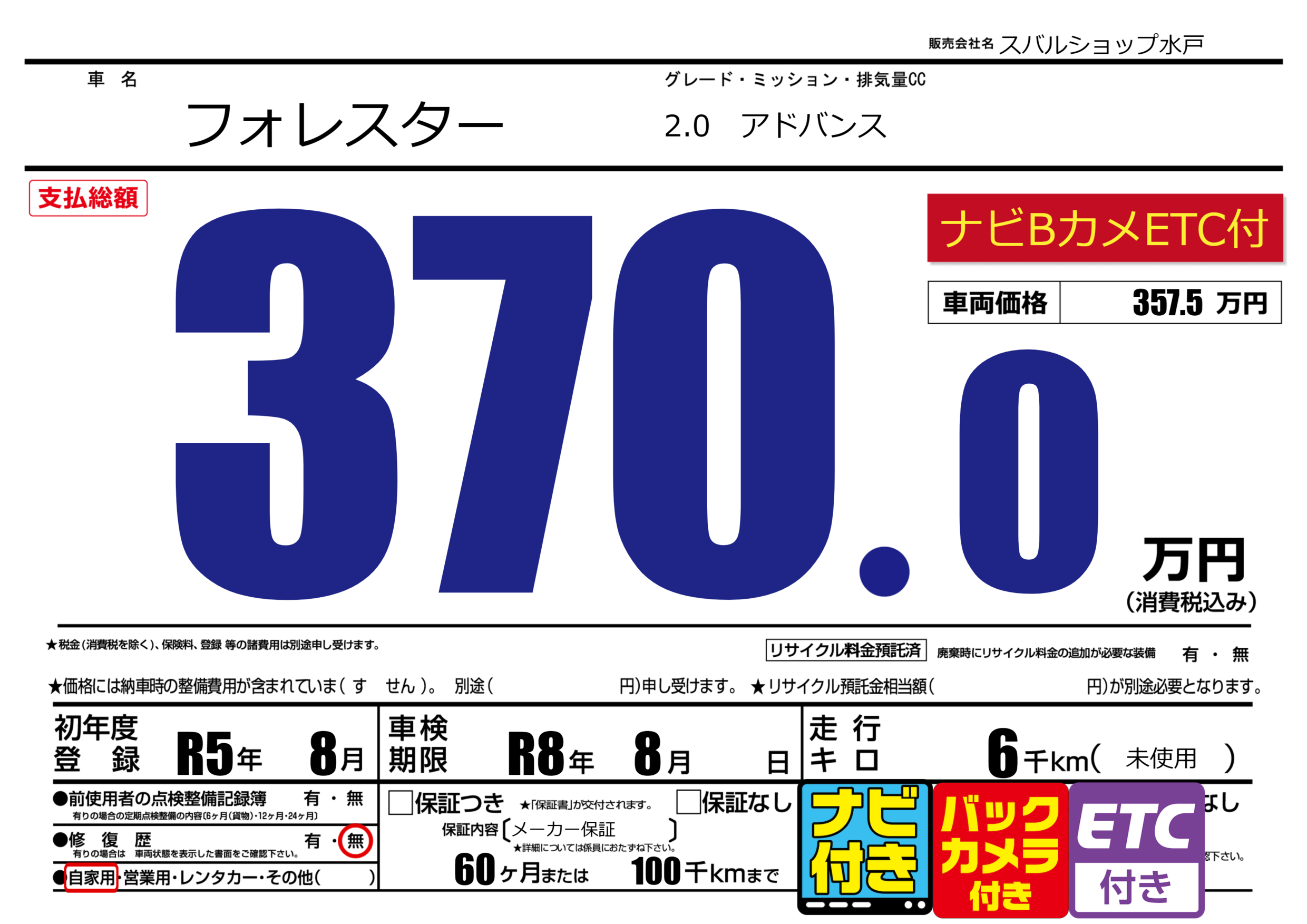 | 車名 | フォレスター | グレード ミッション 排気量 |