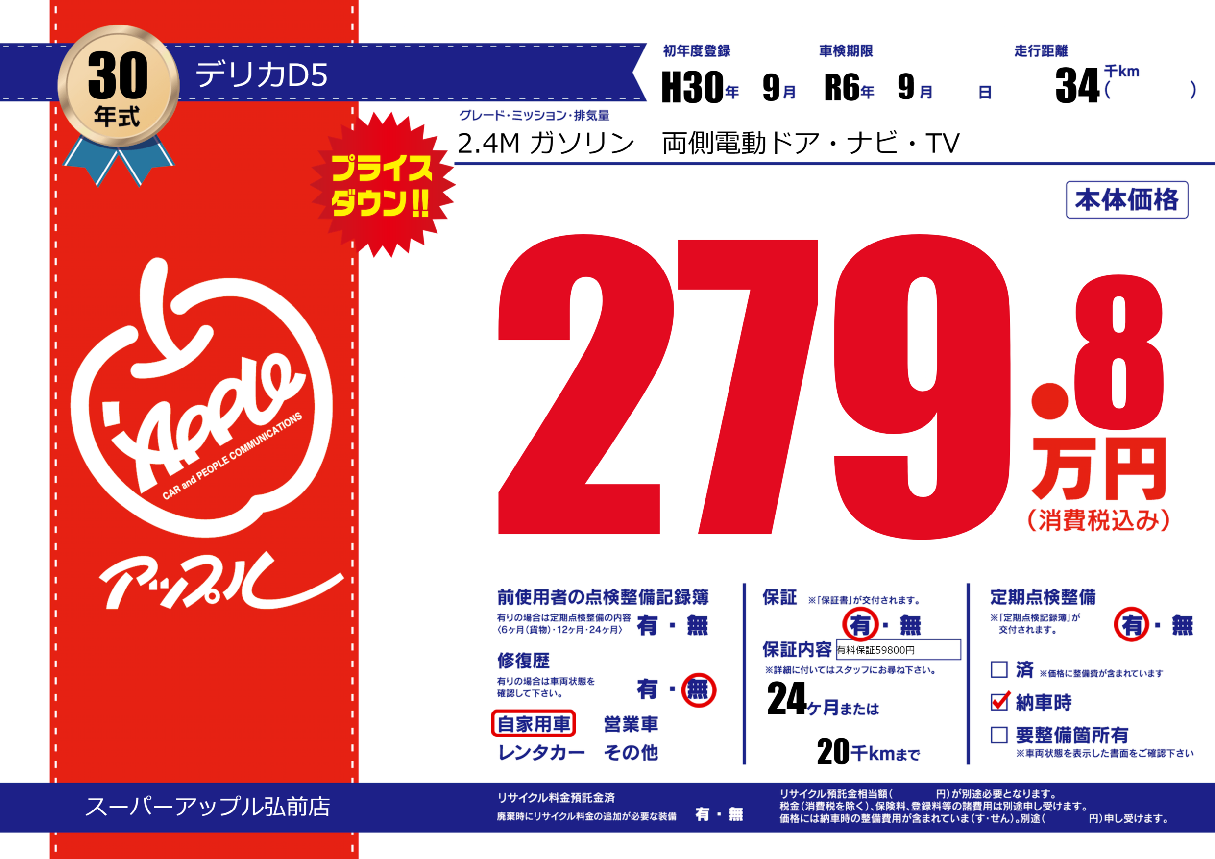 | 車名 | デリカD5 | グレード ミッション 排気量 |