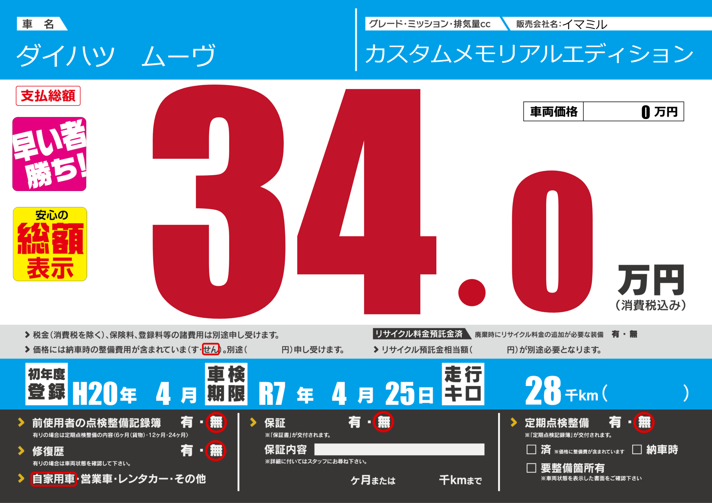 | 車検制限 | R7年 4月 25日 | ||