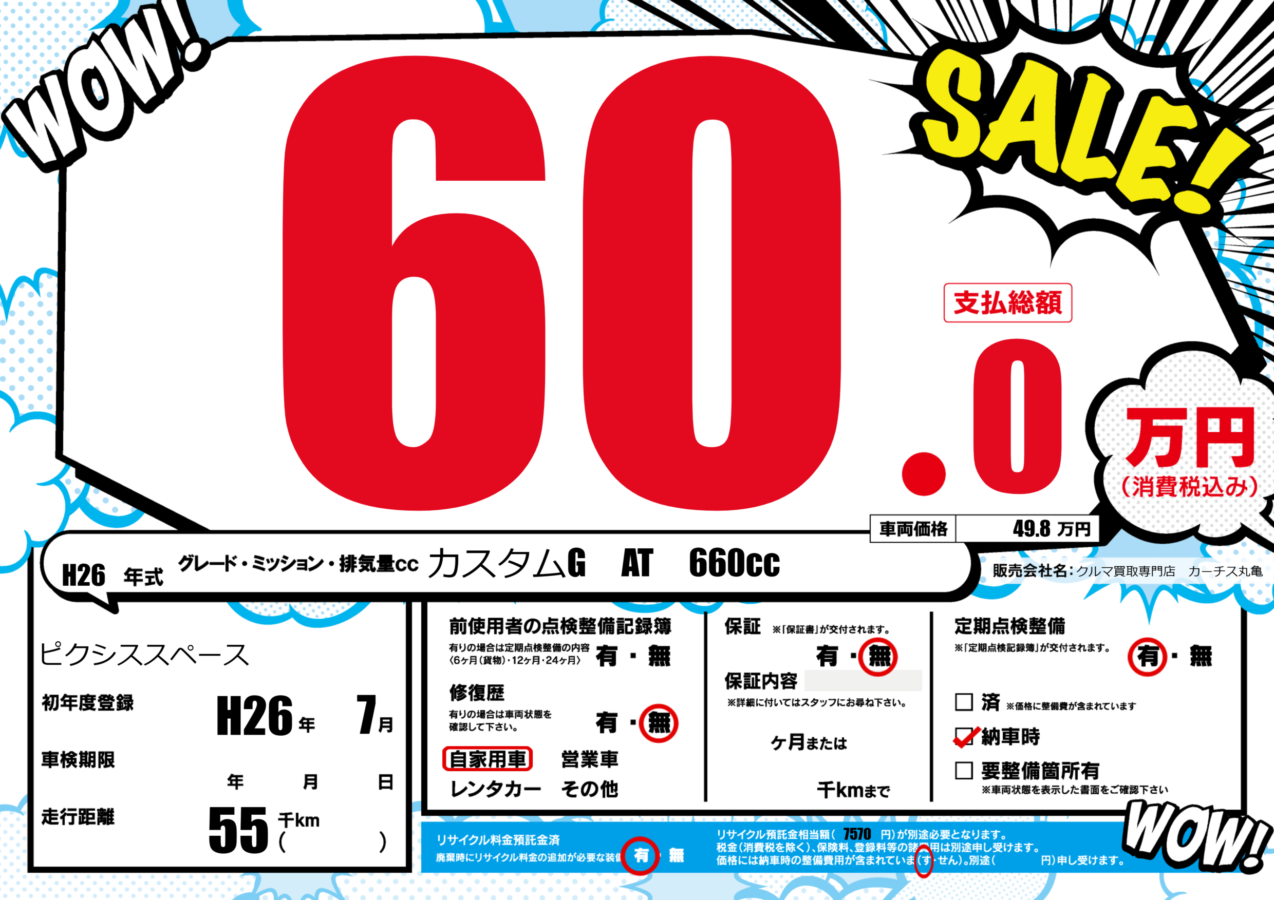 | 定期点検整備 | 定期点検整備あり 納車時あり | ||