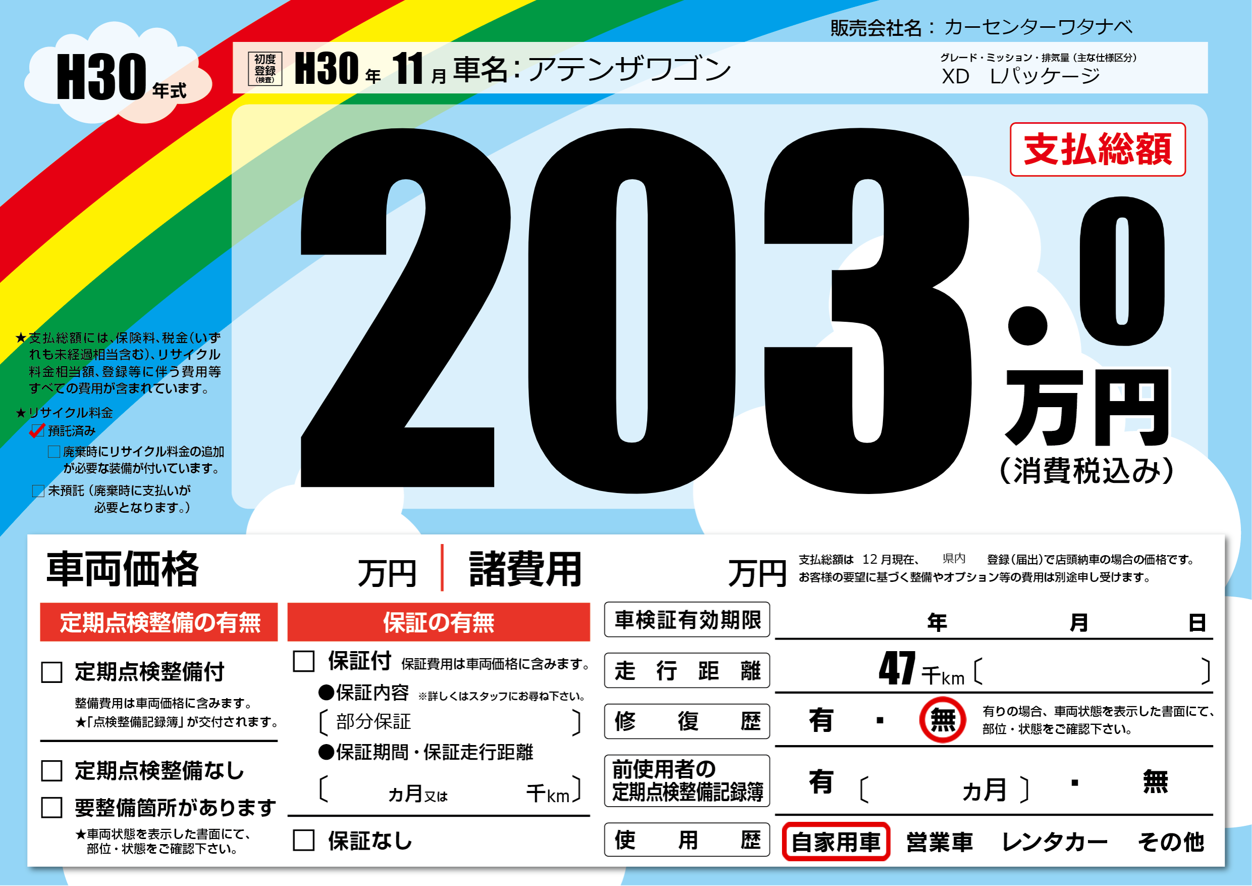 | 走行キロ | 4.7万km | 初年度登録 | H30年11月 |