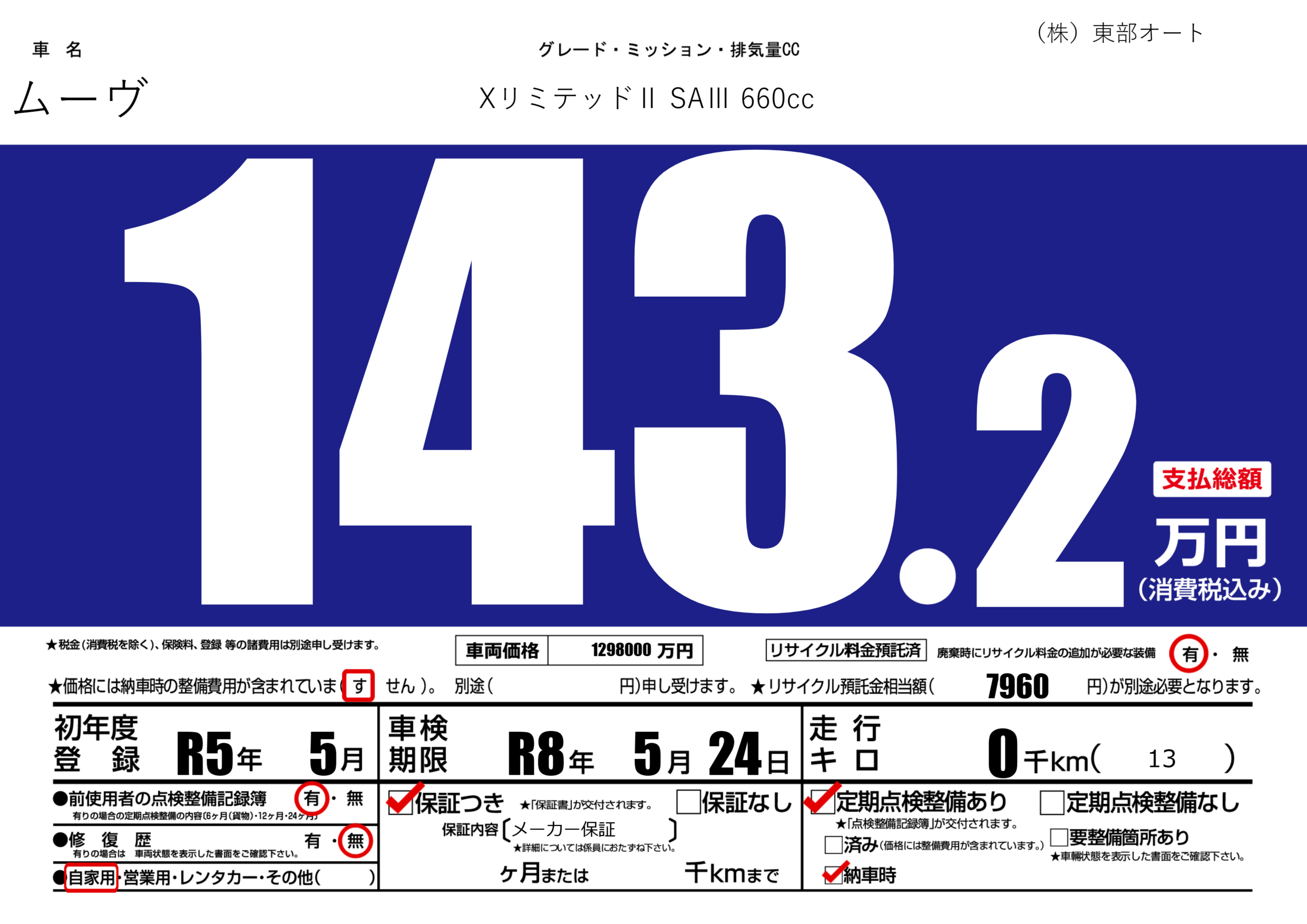| 車名 | ムーヴ | グレード ミッション 排気量 |