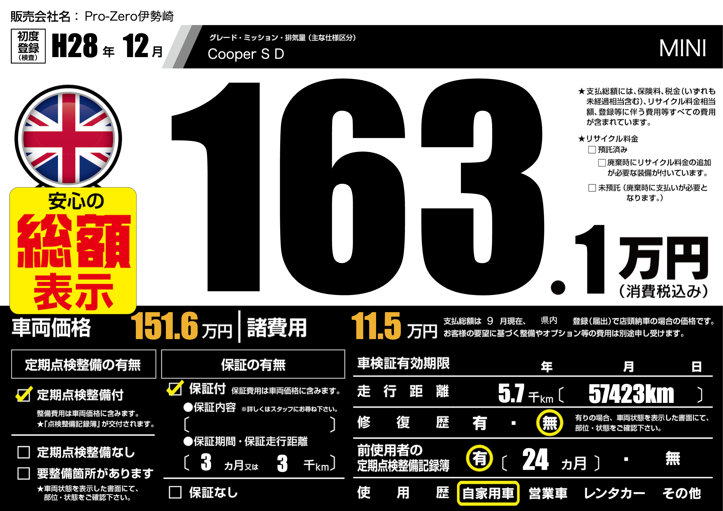 | 車名 | Cooper S D | グレード ミッション 排気量 |