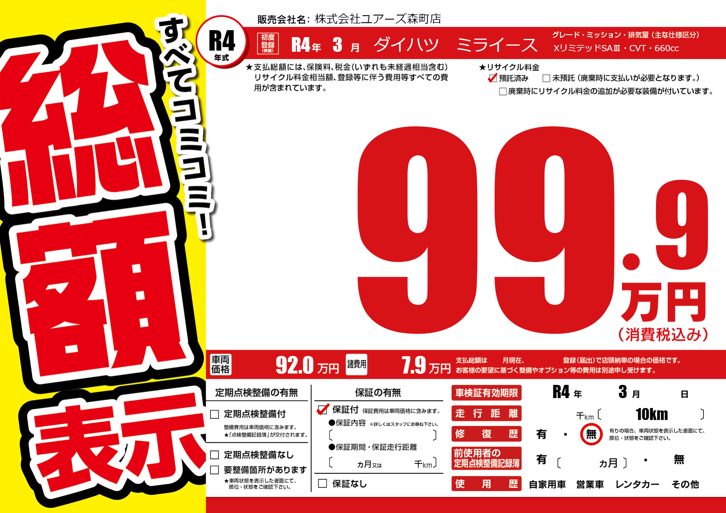 | 走行キロ | - | 初年度登録 | R4年3月 |